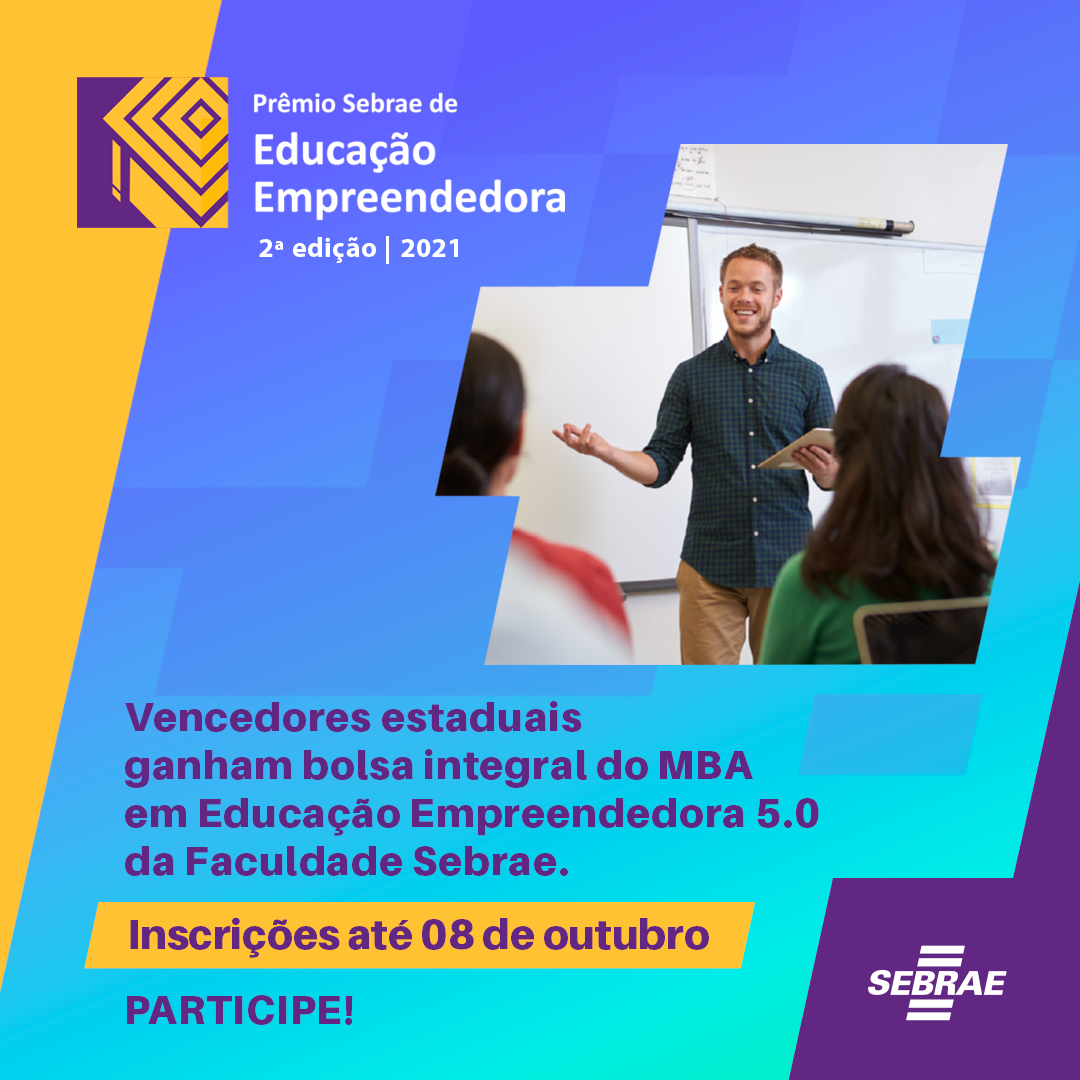 Com 45 projetos, Alagoas é o estado do Nordeste com mais inscrições na etapa estadual da edição 2021 do Prêmio Sebrae de Educação Empreendedora. O prêmio busca reconhecer e valorizar os professores que tenham implementado práticas criativas e inovadoras para desenvolver competências empreendedoras em seus alunos. As inscrições ainda podem ser feitas até a próxima sexta-feira (08). As inscrições ainda estão abertas e podem ser feitas até a próxima sexta-feira no site https://premiosebrae.prosas.com.br/.