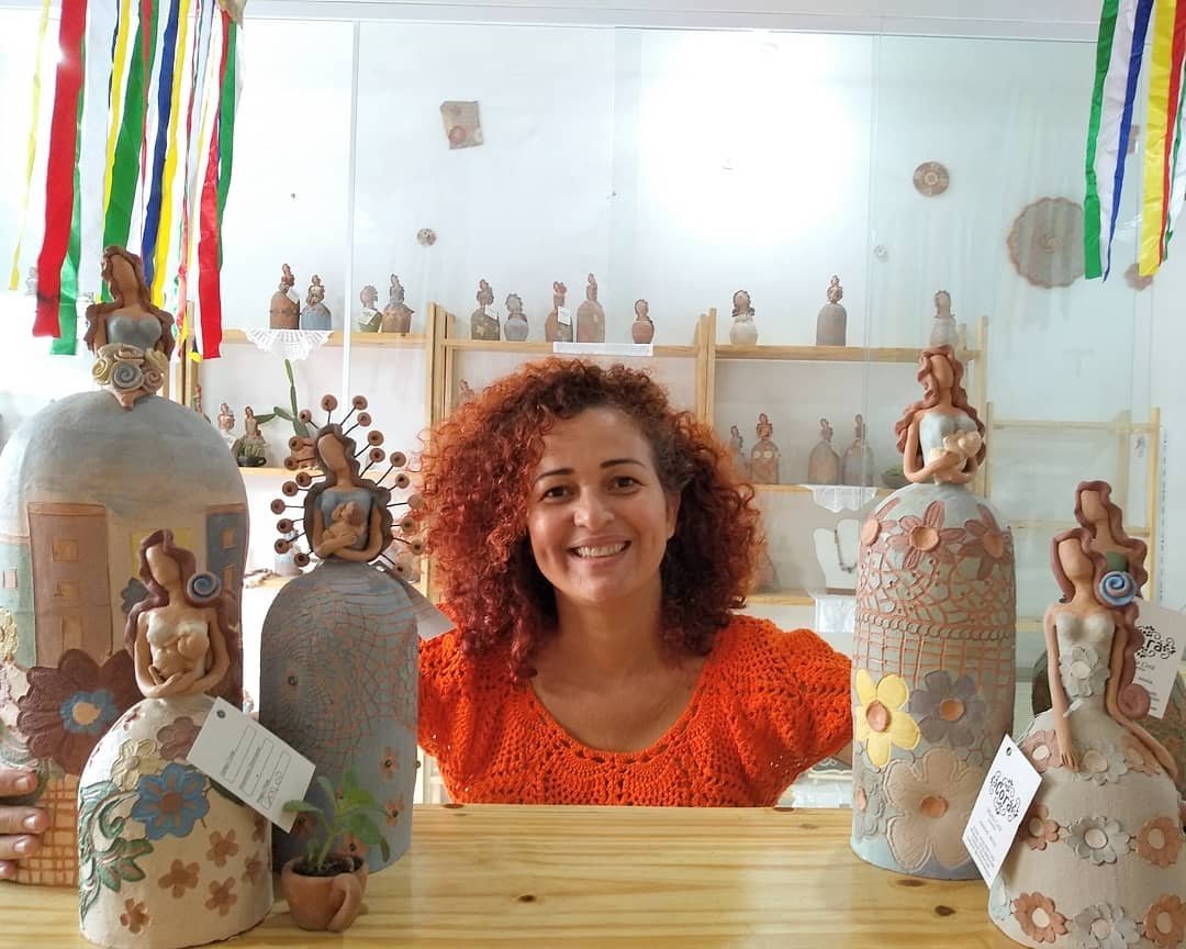 Maria Corá, que há 20 anos confecciona peças feitas de argila, teve que recorrer ao Instagram para manter o fluxo do negócio e agora ganha 100% do valor de uma peça