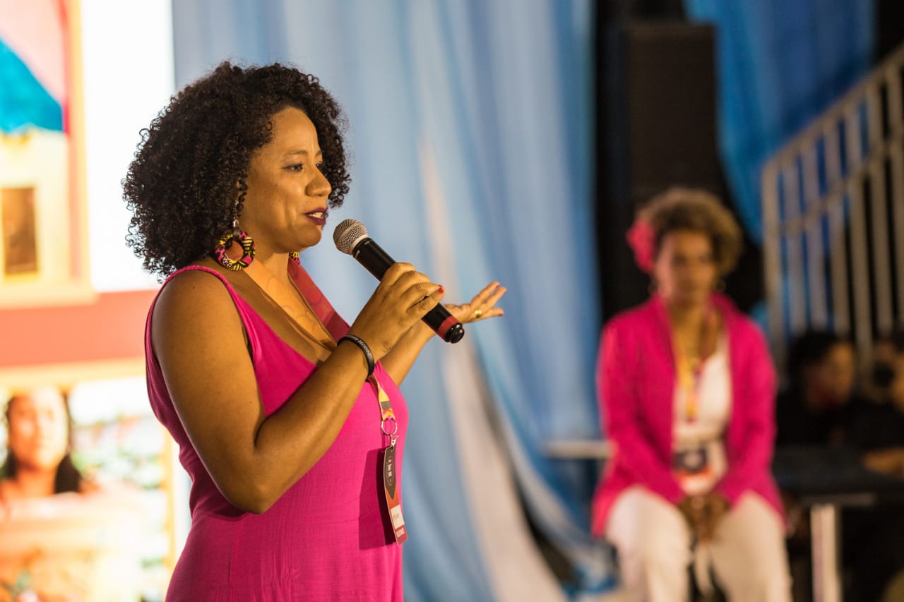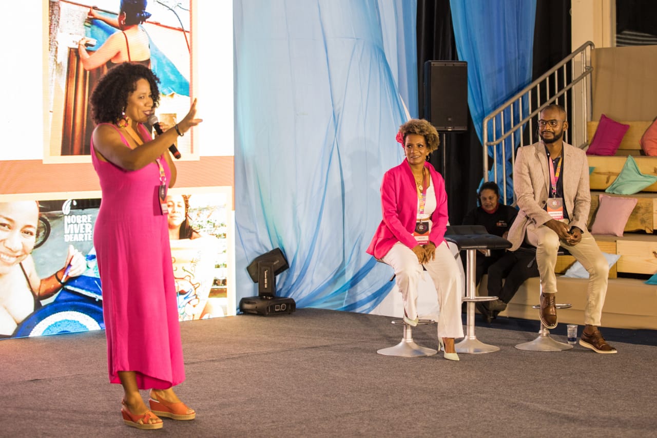 Após a introdução feita por Jonathan, as afroempreendedoras apresentaram seus casos de sucesso. A primeira delas foi Rosiléa, que fundou a loja Divinas Pretas ao perceber que o mercado local não oferecia tantas opções de produtos de beleza e cosméticos para mulheres negras.