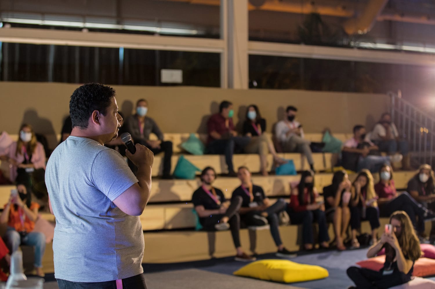 Após uma tarde inteira de assuntos diversos, às 17h, foi a vez da leveza dar o ar da graça com a apresentação do especialista Arthur Martins, instrutor de Yoga do Riso e empreendedor criativo, ator, palhaço e poeta. Sua palestra teve como tema ‘EmpreendedoRISO: atingindo boa produtividade com risadas’.