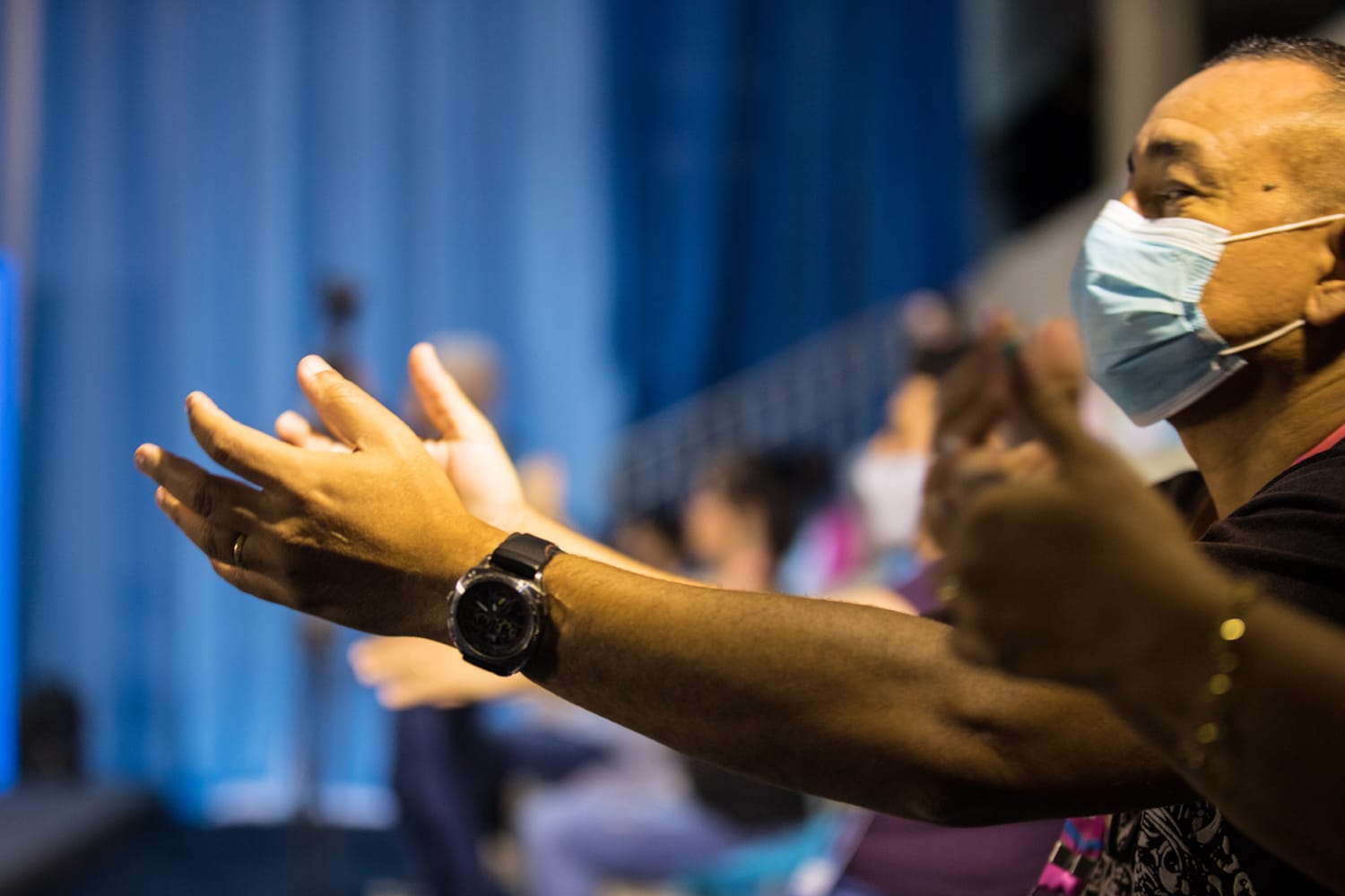 Com a prática de exercícios utilizando estalos de dedos, palmas, movimentos corporais, respiração controlada e ‘risada simulada’, Arthur iniciou o Yoga do Riso com o público. O especialista ressaltou que a técnica pode ajudar na luta contra a ansiedade e a depressão, além de potencializar as virtudes dos empreendedores.