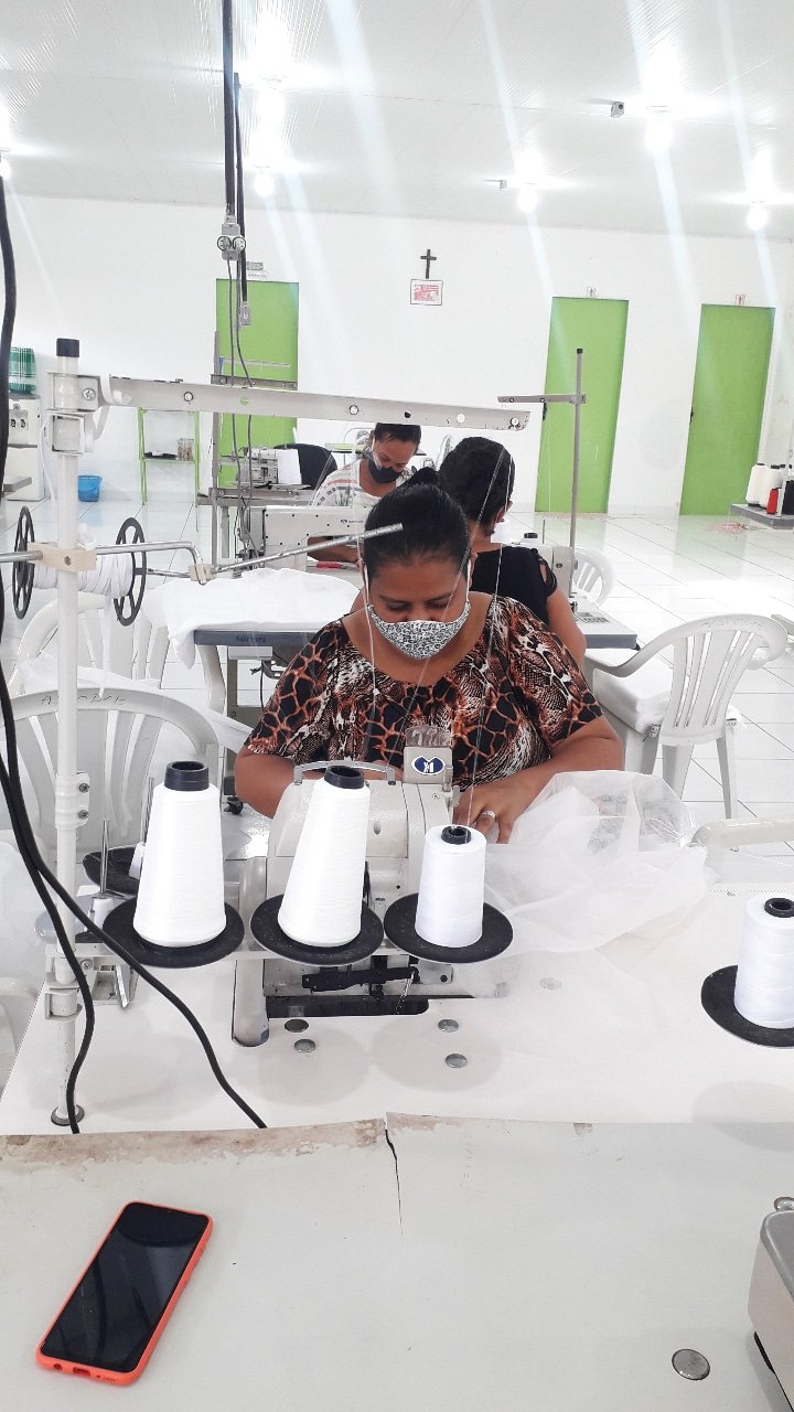 A presidente da associação de Olho d’Água das Flores ressalta que apenas uma empresa do estado encomendou 15 mil capotes (roupas para hospitais), uma demanda que envolve mais de 10 associadas trabalhando diariamente e ajuda a associação a recuperar um pouco do prejuízo causado pela pandemia.