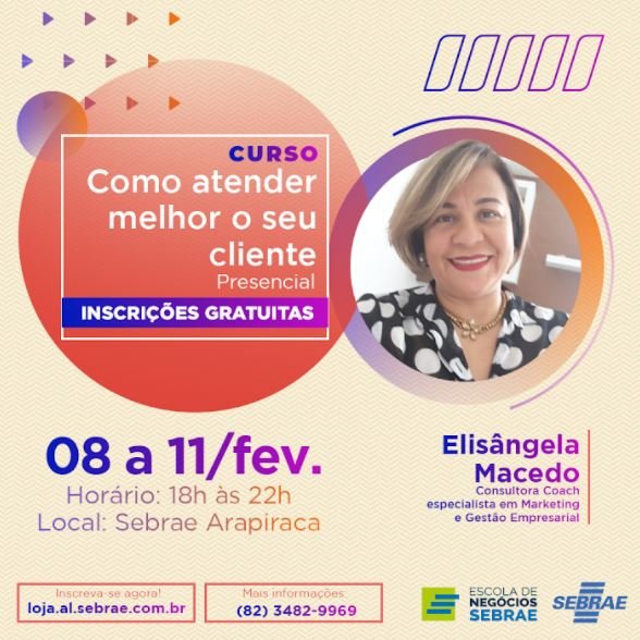De 08 a 11 de fevereiro, das 18h às 22h, o Sebrae Alagoas irá realizar, de forma gratuita, o curso ‘Como Atender Melhor o Seu Cliente’, na Agência de Atendimento Integrada do Sebrae em Arapiraca. A capacitação tem por objetivo preparar empreendedores para que eles possam compreender os benefícios da gestão estratégica de vendas, bem como possam conhecer o perfil de seus clientes e desenvolver suas equipes para melhorar os resultados de vendas.