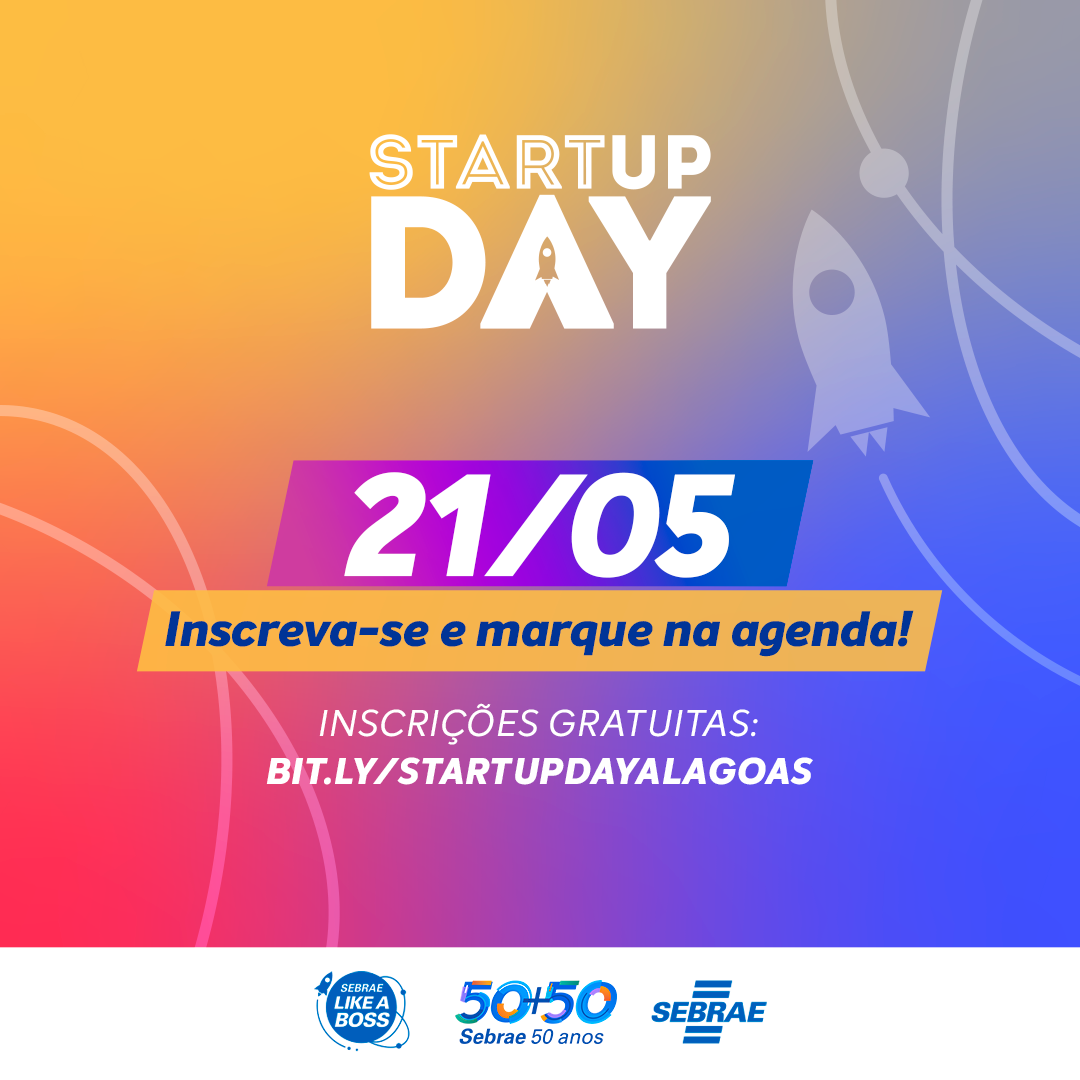 O Sebrae Alagoas realiza, no próximo sábado, dia 21, a edição 2022 do Sebrae Startup Day. Das 8h às 18h, em sua sede, haverá palestras, painéis, seminários, mentoria, exposição digital e espaço metaverso. O evento tem como público empreendedores de startups que estão em todos os momentos de maturidade: curiosidade, ideação, operação e crescimento. A inscrição é gratuita e deve ser feita pelo endereço eletrônico bit.ly/startupdayalagoas .