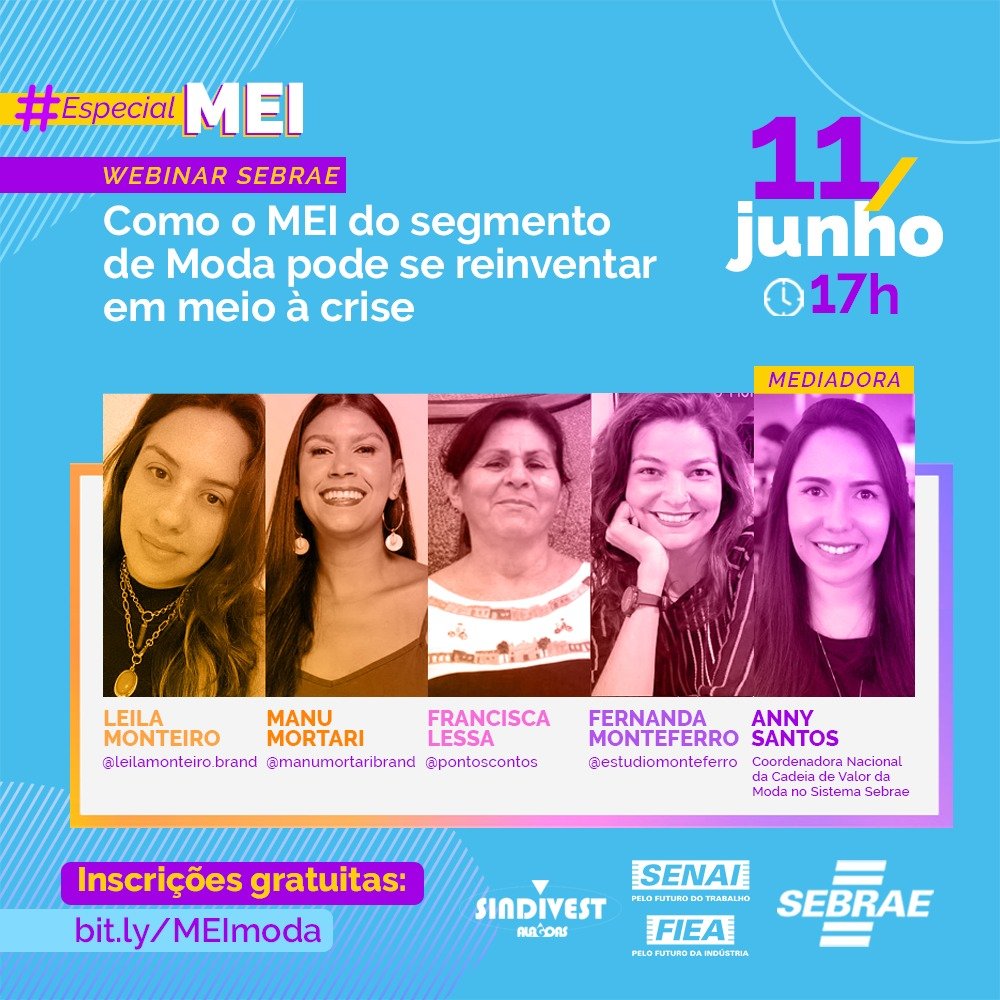 “Vamos mostrar como as microempreendedoras individuais do segmento de moda estão atuando nesse momento de pandemia, o que estão fazendo para continuar ofertando seus produtos, que estratégias criaram para isso e, também, como estão se preparando para o pós-Covid-19”, informa.