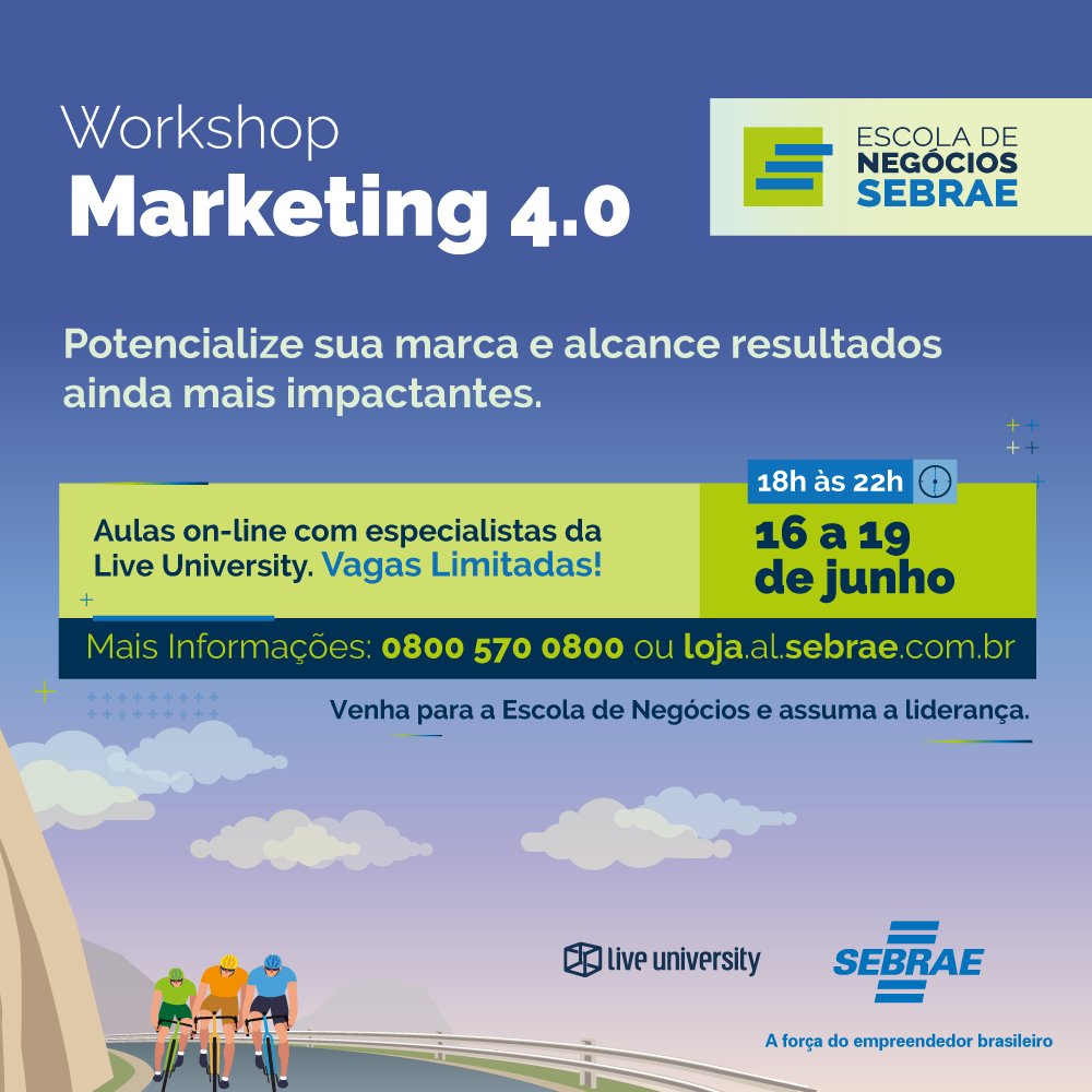 Nos dias 16, 17, 18 e 19 de junho, das 18h às 22h, o Sebrae em Alagoas realizará um workshop sobre marketing com foco nas tendências da era 4.0. O evento, que será completamente digital, já está disponível para compra na Loja Virtual da instituição.