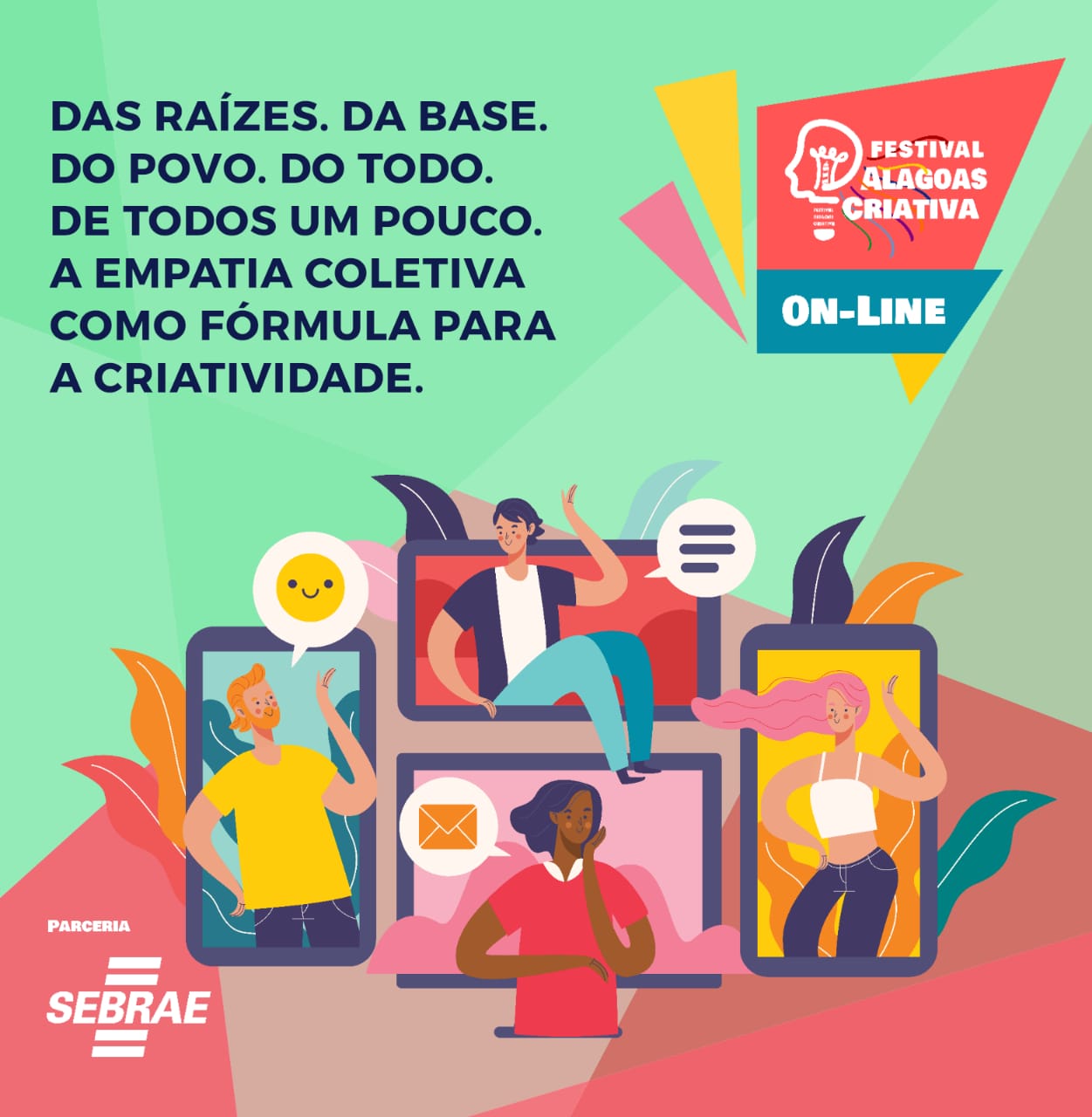 Para alcançar esse objetivo, a programação do festival conta com a participação de diversos especialistas e empreendedores alagoanos, que na edição deste ano ajudam a divulgar suas ideias por meio de entrevistas numa websérie no Youtube. A primeira delas foi sobre Resistência e Propriedade Intelectual Criativa como Identificação Cultural, com Milla Pasan, mestra em Propriedade Intelectual pela Universidade Federal de Alagoas (Ufal).