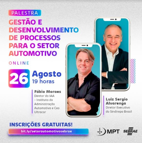 O setor automotivo enfrenta alguns desafios específicos como a falta de mão de obra qualificada, ausência de engajamento dos funcionários e alta rotatividade. E para auxiliar os empresários deste setor a superar esses problemas e melhorar a gestão, o Sebrae Alagoas promove de forma gratuita e on-line a palestra ‘Gestão e Desenvolvimento de Processos para o Setor Automotivo’, no próximo dia 26 de agosto, a partir das 19 horas.