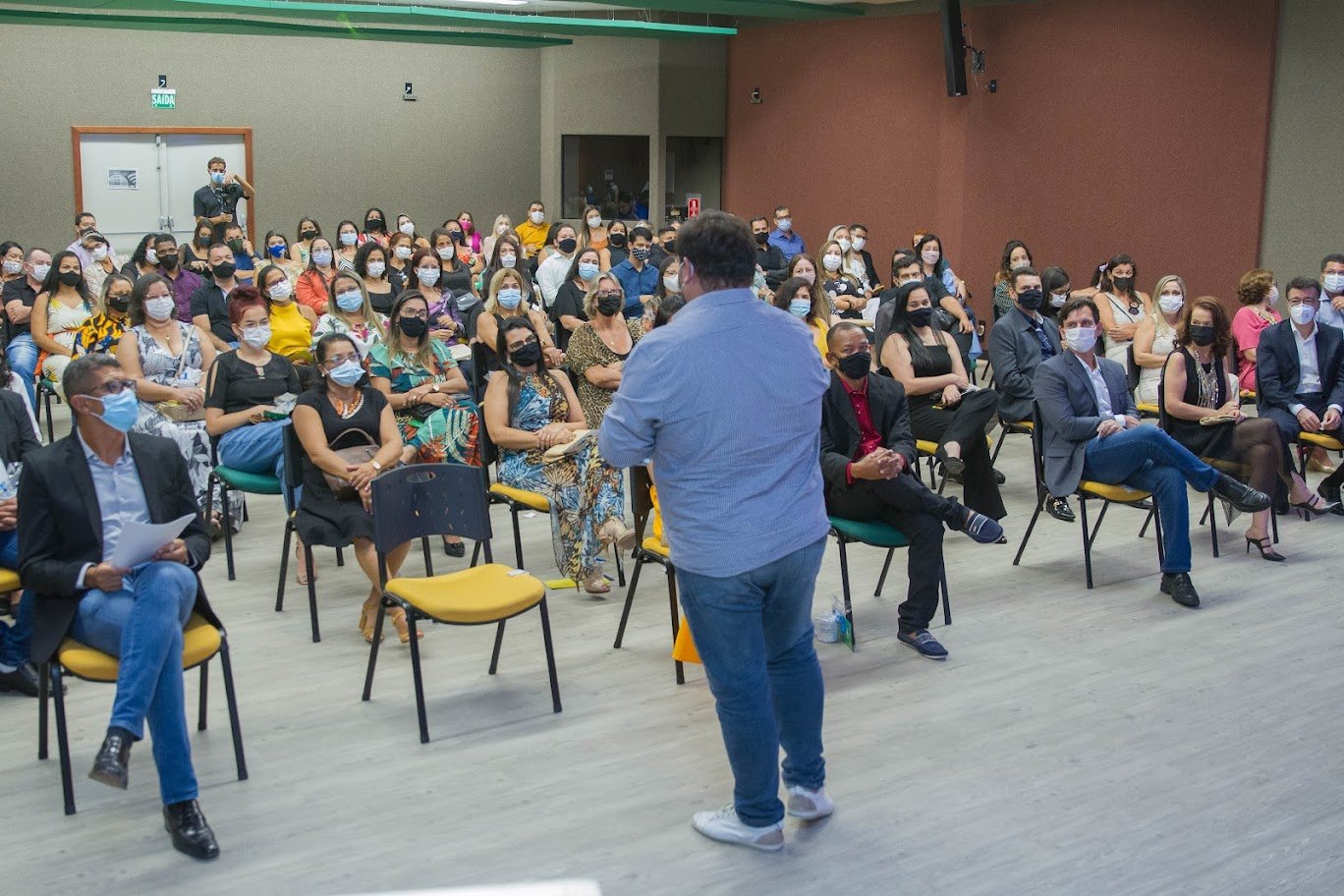 A cerimônia também contou com a palestra ‘A saúde do educador e a importância da Autoestima para a sua qualidade de vida’, ministrada por Izabel Moreschi e Guga Cidral.
