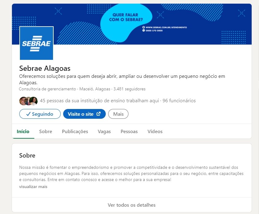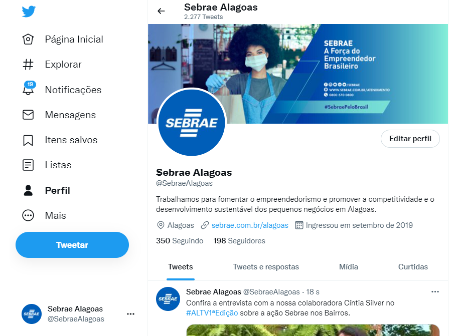 Os empreendedores também podem ter acesso às soluções do Sebrae Alagoas por meio das redes sociais, nos perfis no Instagram (https://instagram.com/sebraealagoas), Facebook (https://www.facebook.com/SebraeAlagoas/), LinkedIn (https://www.linkedin.com/company/sebrae-alagoas), Twitter (https://twitter.com/SebraeAlagoas) e YouTube (https://www.youtube.com/c/sebraealagoasoficial).