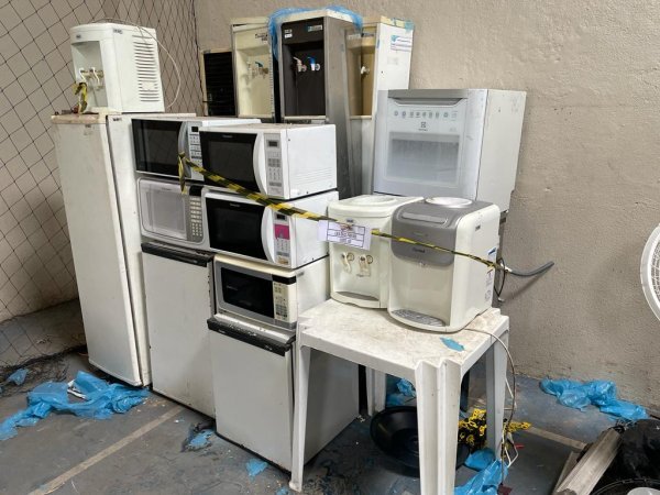 São 38 lotes que reúnem equipamentos de informática, centenas de cadeiras e mesas, aparelhos de ar-condicionado e diversos outros itens