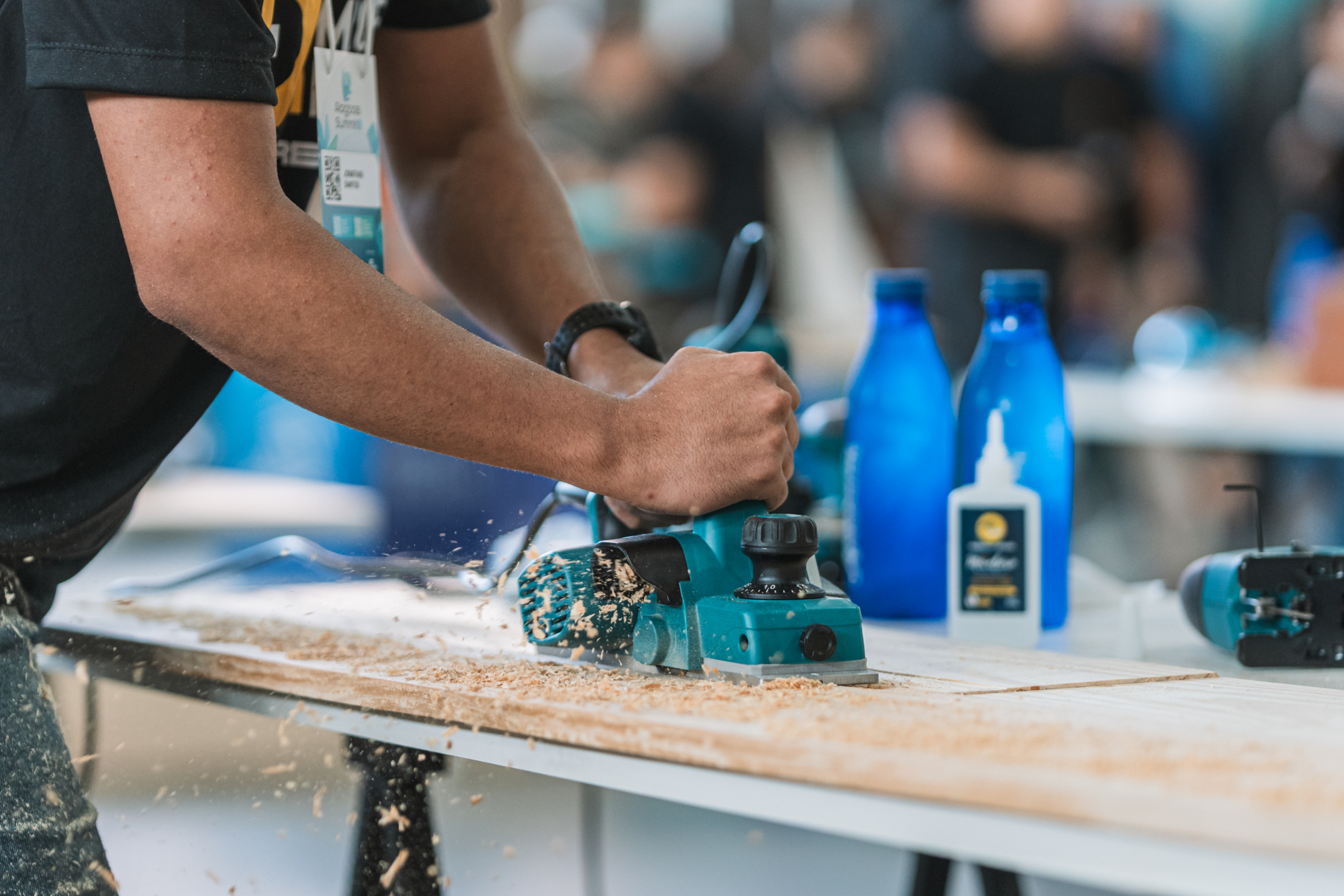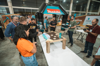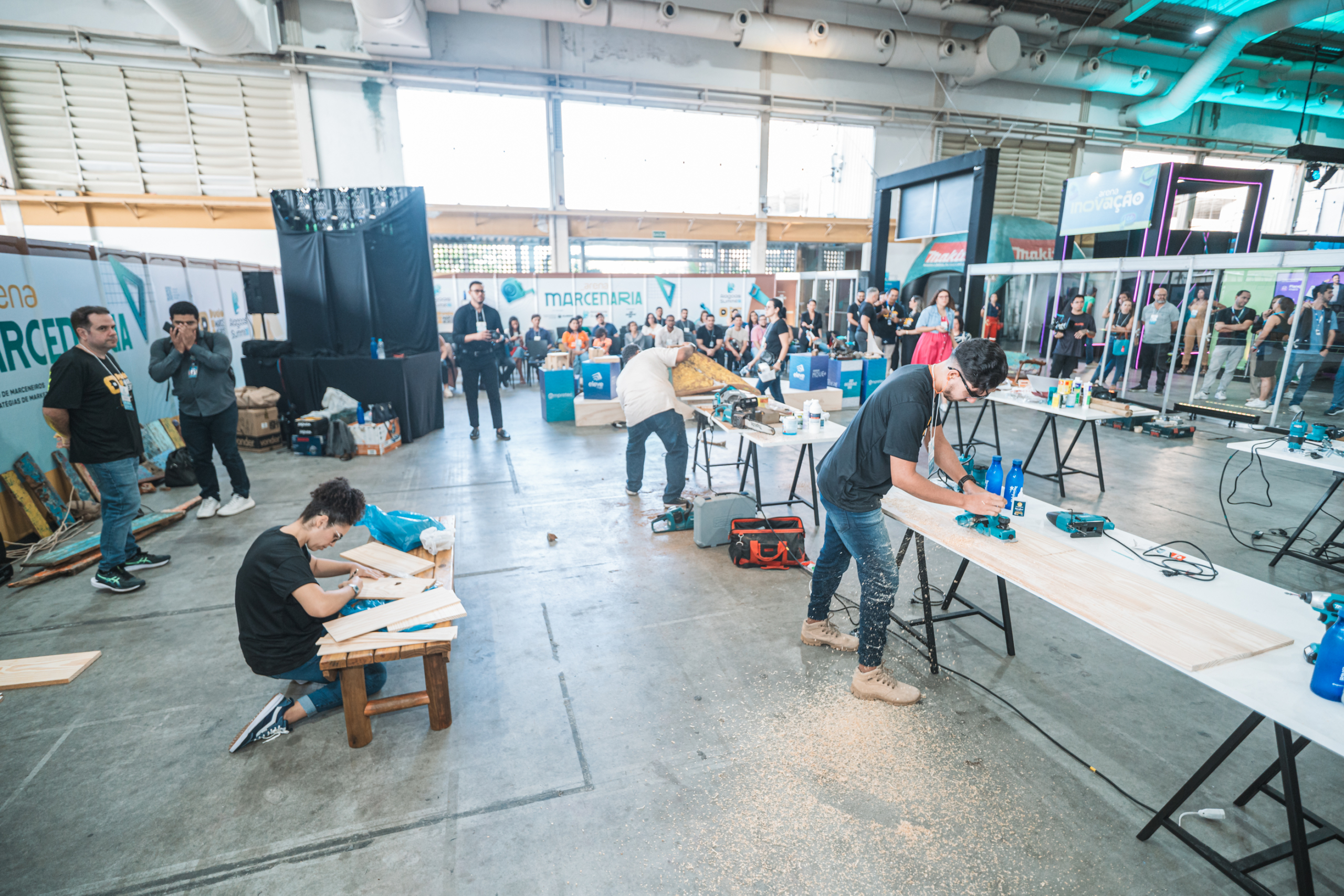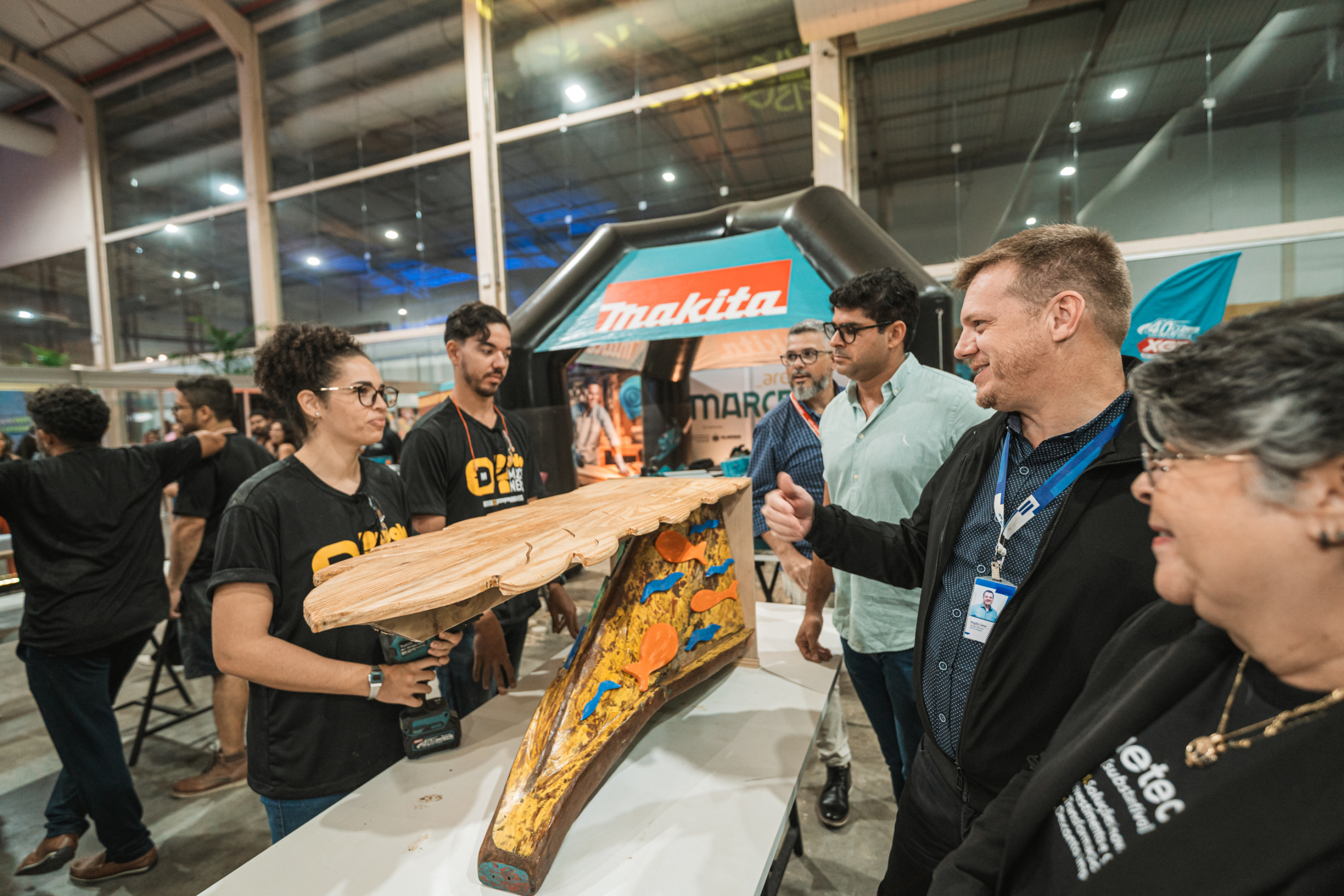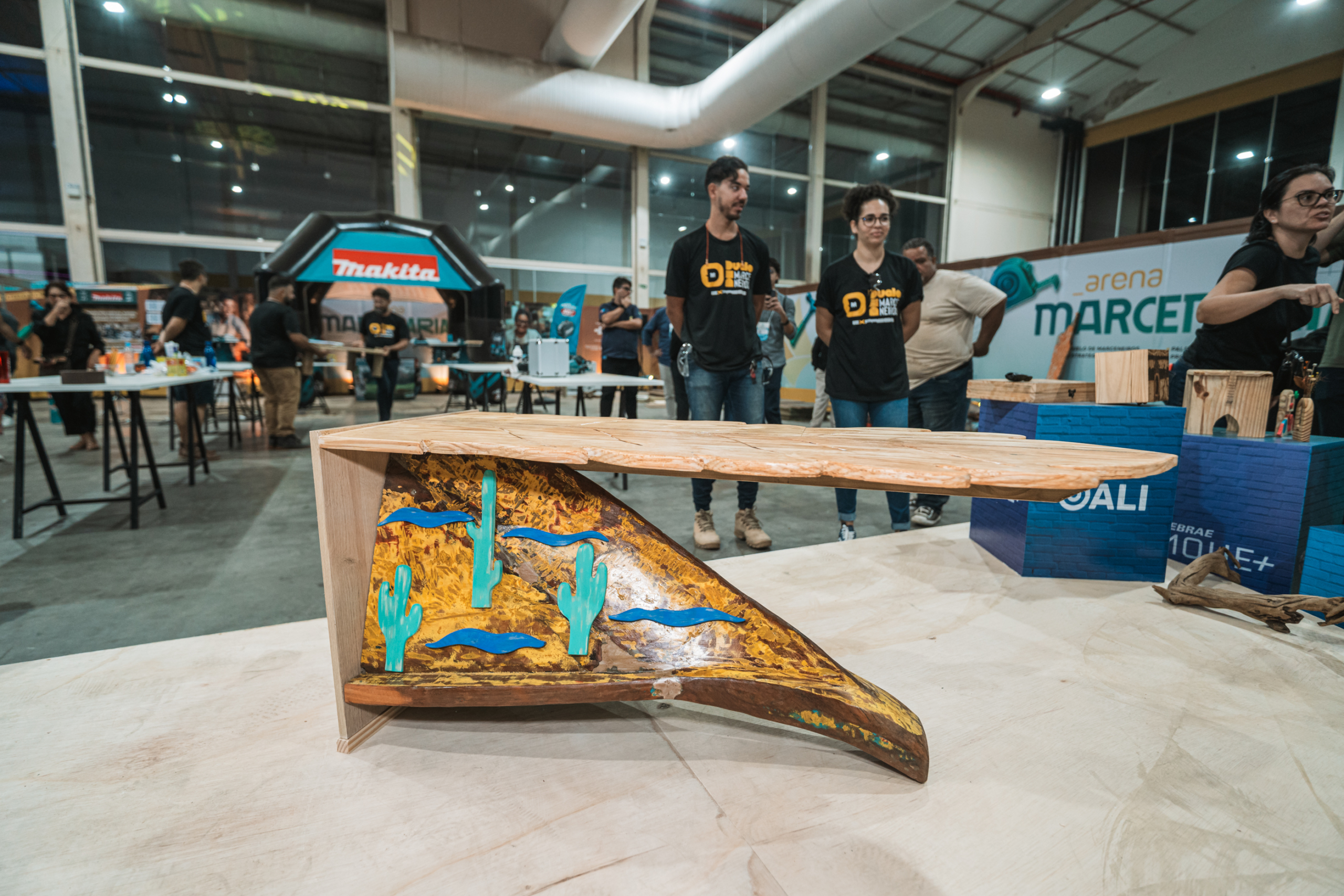 Em meio ao pó de madeira, o som das lixadeiras e serras elétricas, os participantes correram contra o tempo, enquanto acontecia a palestra “Marcenaria Boa é Marcenaria Cheia”, de Valcir Goulart, e “Madeira que transforma”, com Otávio Filho, da Amadê, especialista em móveis sob medida.