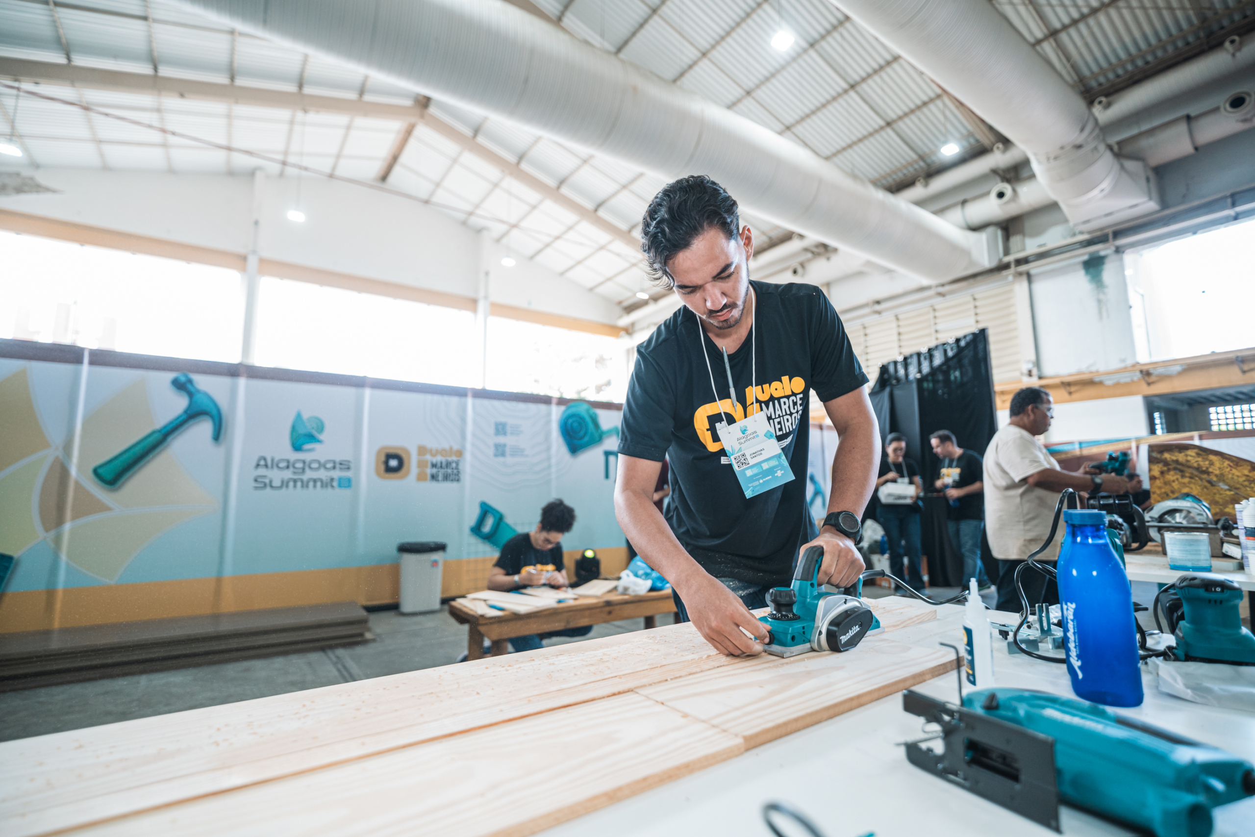 O que pode surgir quando criatividade, técnica e identidade regional se encontram em uma disputa ao vivo? O público do Alagoas Summit 2025 descobriu a resposta na última sexta-feira (06), com a estreia da Batalha de Marceneiros —evento inédito no Nordeste, promovido pelo Sebrae Alagoas. A disputa aconteceu na Arena Marcenaria, dentro do Centro de Convenções Ruth Cardoso, em Maceió, e reuniu duas equipes formadas por dois marceneiros e um artesão, cada. O desafio: criar, em apenas quatro horas, uma mesa de centro que unisse funcionalidade, originalidade e identidade autoral — tudo isso ao vivo, diante do público, jurados e mediadores do evento.