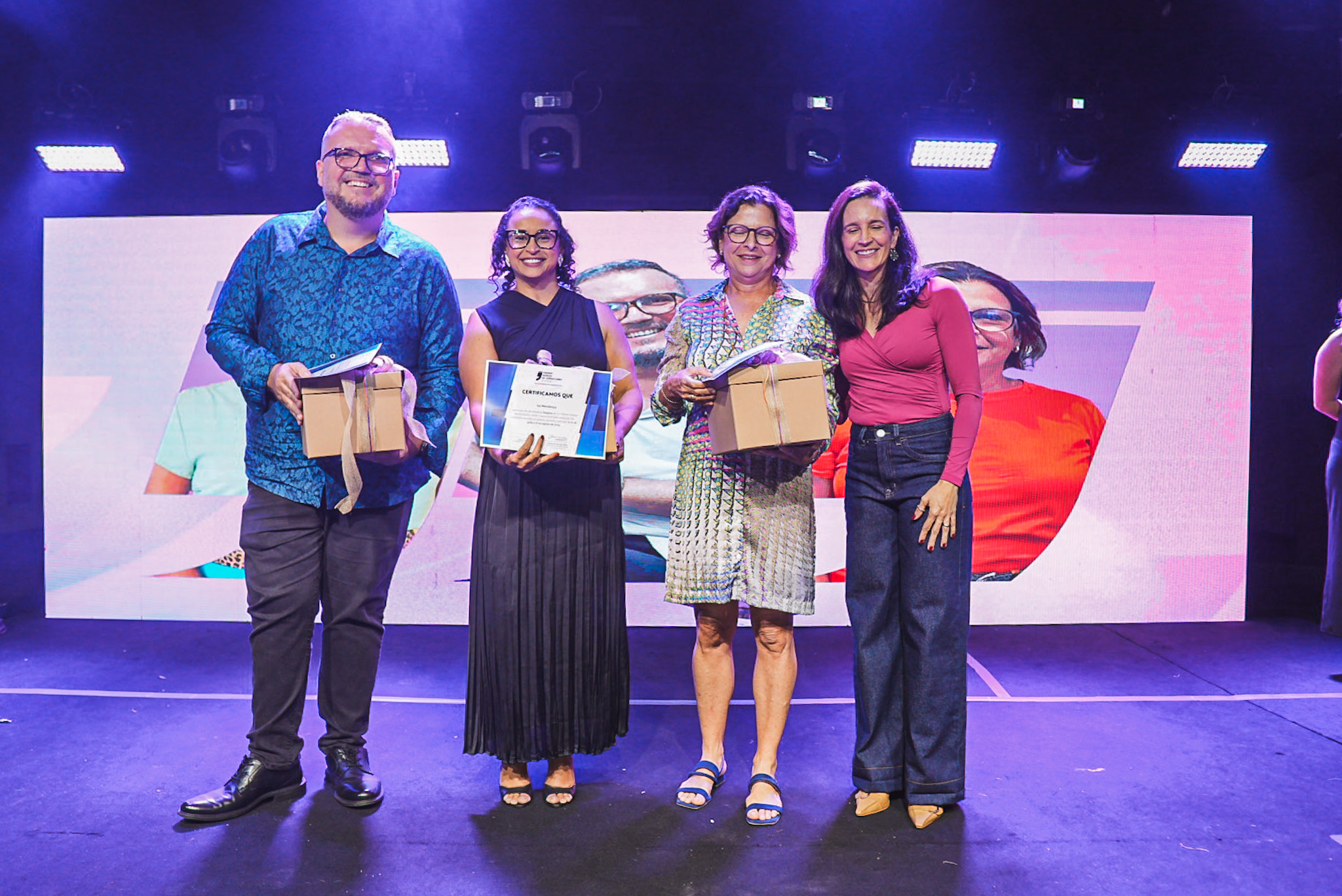 O 2º lugar ficou com o podcast “Caminhos no Negócio”, com três episódios que mostram como a trajetória de uma mulher nordestina transformou um pedaço de terra em símbolo de resistência ambiental e social, no “Eco Rancho Vovô Pakita: O Empreendedorismo que Brota da Terra”, desenvolvido por Lucas Malafaia e Rafael Alves. “Essa história merecia muito ser contada. A Jaqueline é uma batalhadora que venceu pela educação e inspira outras pessoas”, disse Lucas.
