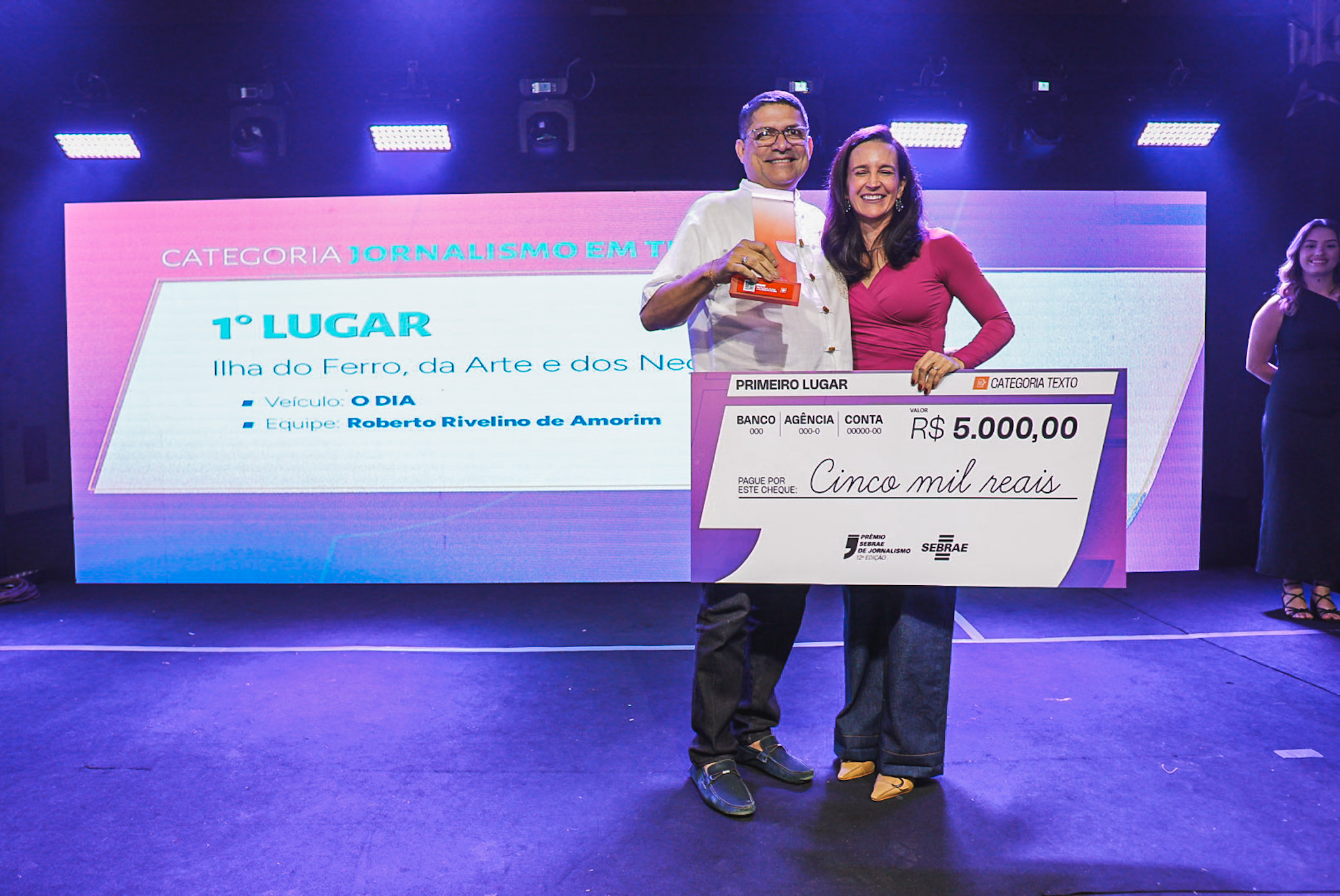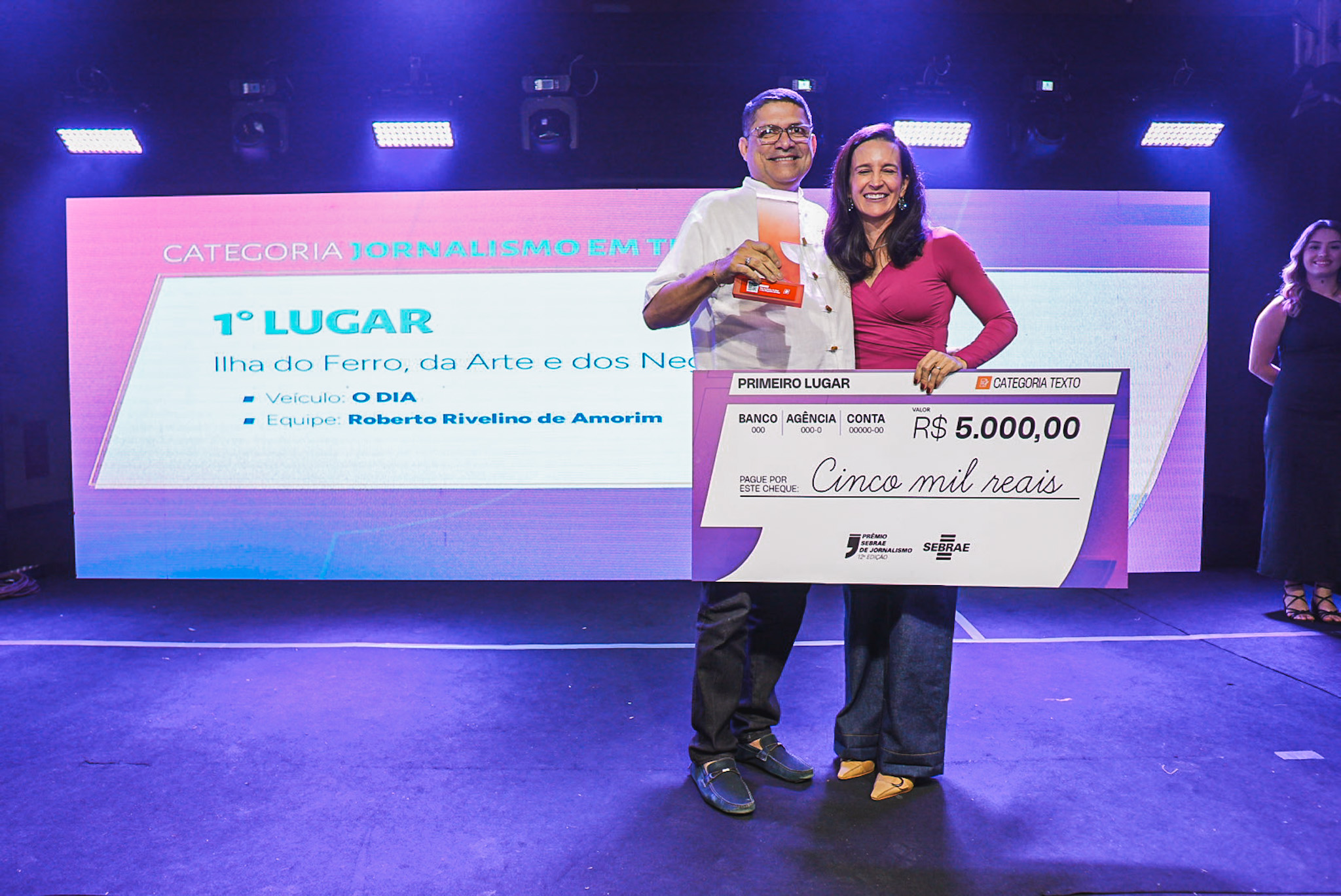 Na categoria Texto, o 1º lugar foi para a reportagem “Ilha do Ferro, da Arte e dos Negócios”, produzida por Roberto Amorim (O Dia). “Estou muito feliz por, depois de várias décadas em sala de aula, estar de volta escrevendo, fazendo jornalismo com apuração. Parabéns a todos que insistem no jornalismo”, disse Roberto.