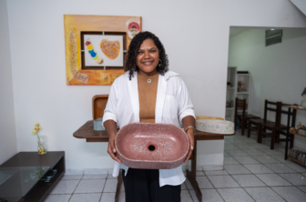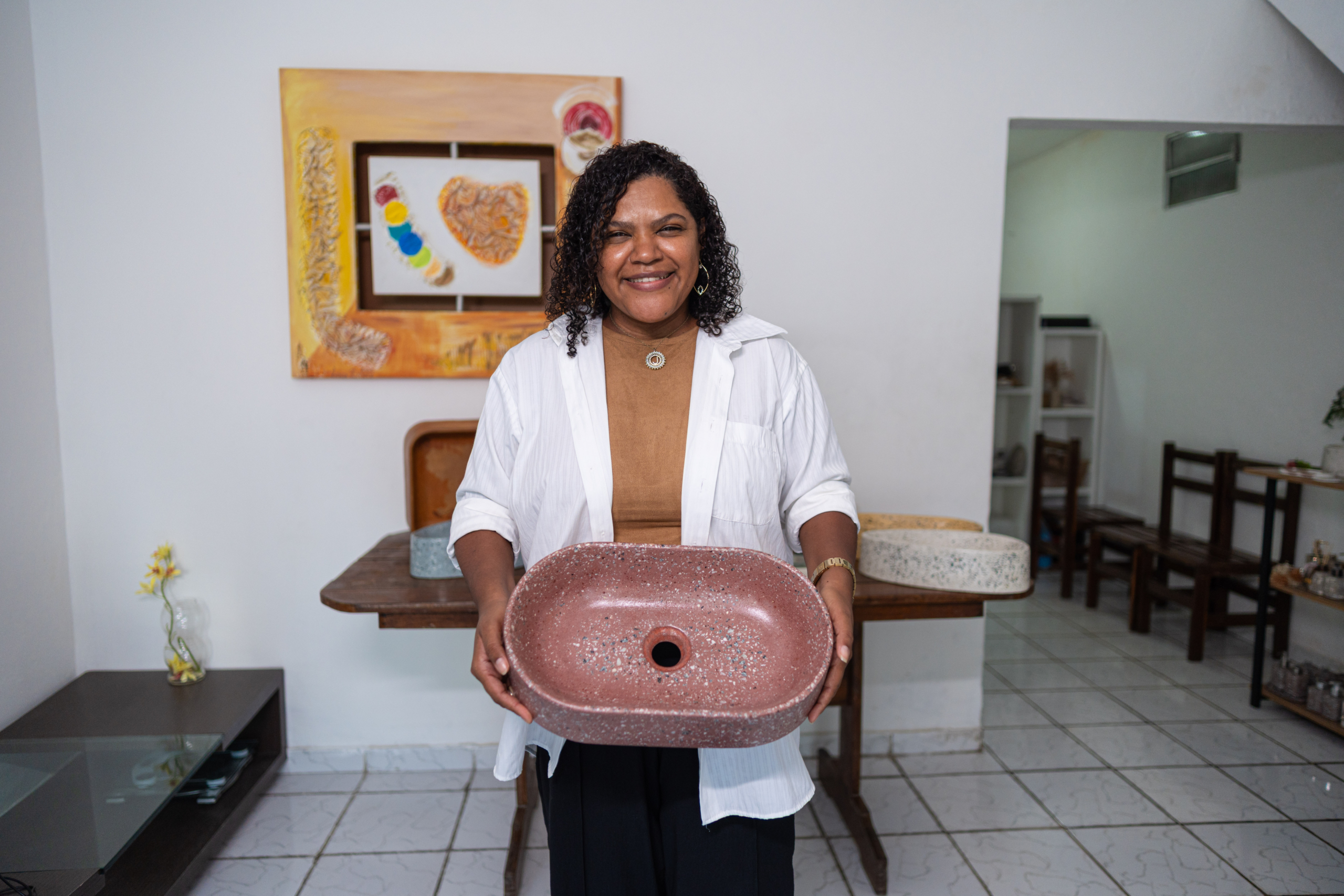 Formada em Gestão de Sistemas de Informação, Josiane atuou por mais de 11 anos no mercado técnico, gerenciando clínicas veterinárias. Um problema de saúde a afastou da antiga profissão e, durante uma reforma simples em casa, surgiu a ideia de produzir, por conta própria, a cuba do banheiro. “No finalzinho de 2023 começamos a assistir vídeos no YouTube e criamos nossas três primeiras peças. A ideia era só escolher uma para usar no banheiro”, conta.