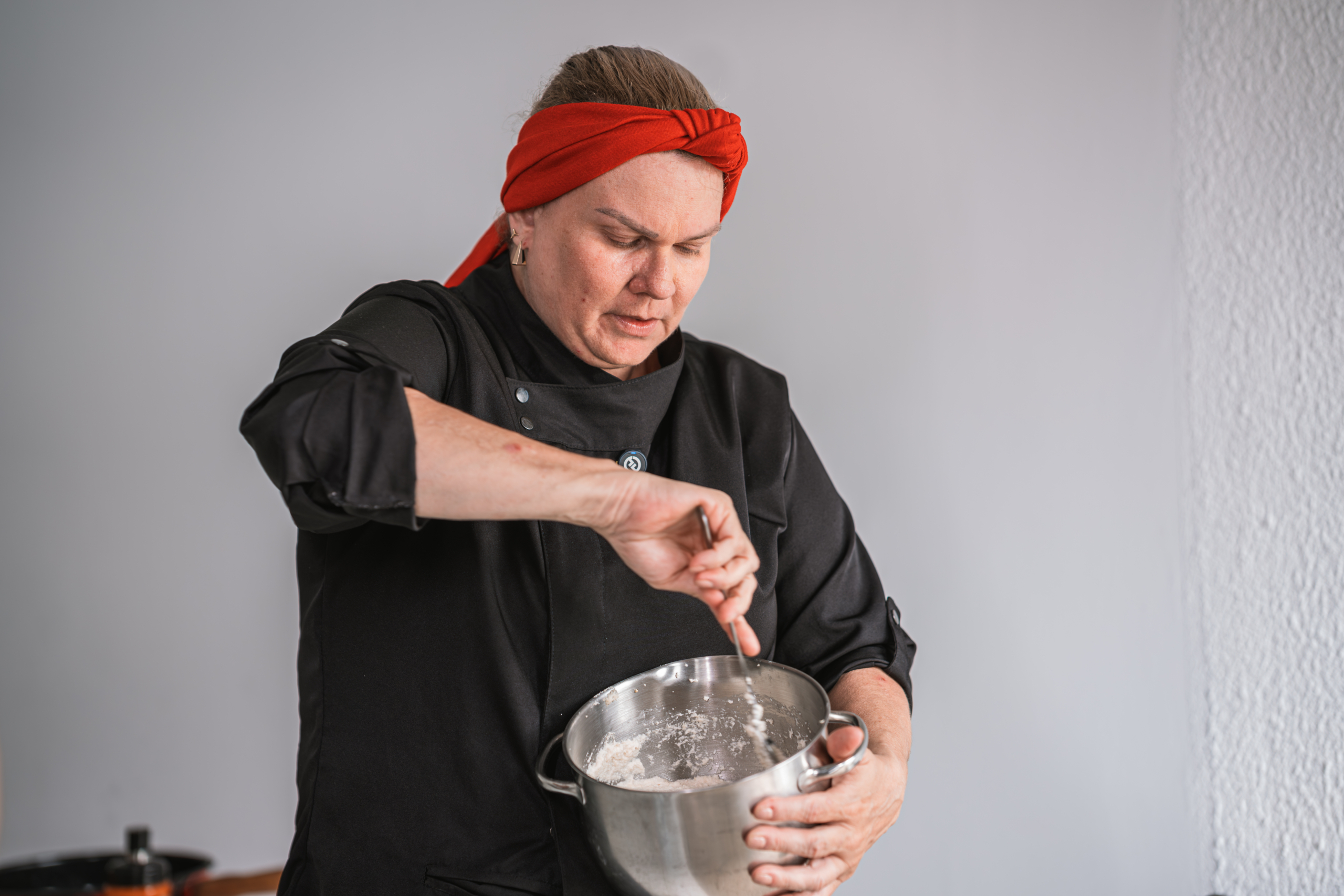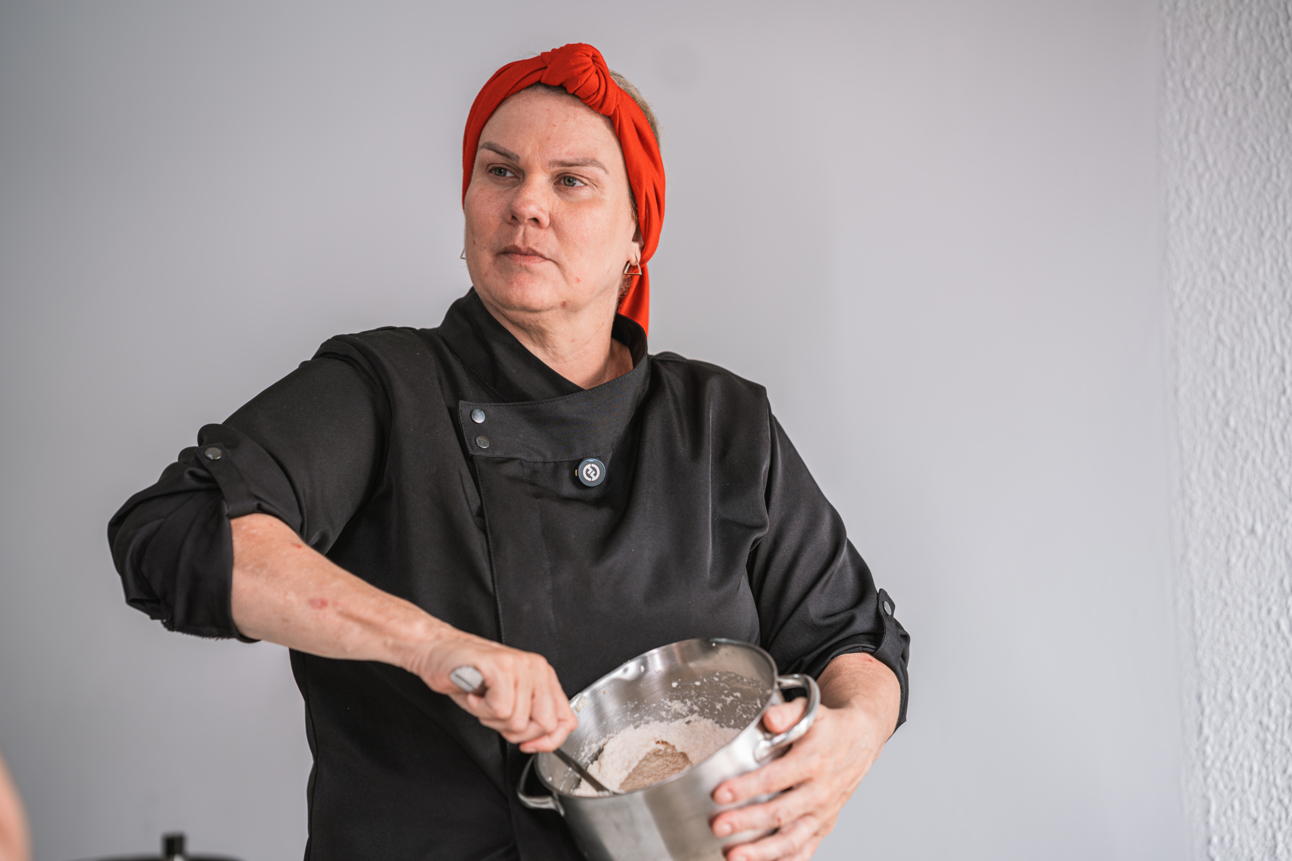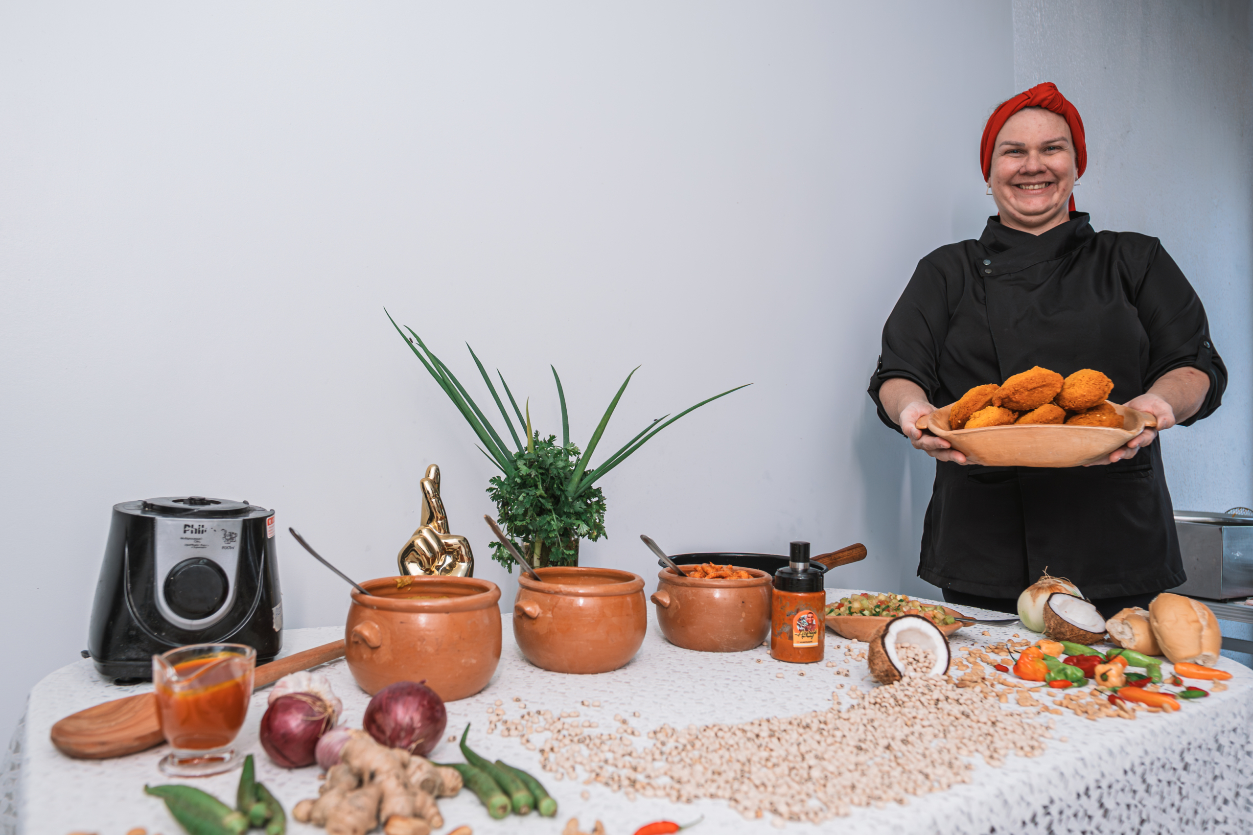 Mesmo com muitas tentativas e erros, ela não desistiu até conseguir produzir o bolinho, o vatapá e o caruru com sabor e textura ideais, aprovados por dois baianos autênticos: o marido e o sogro.