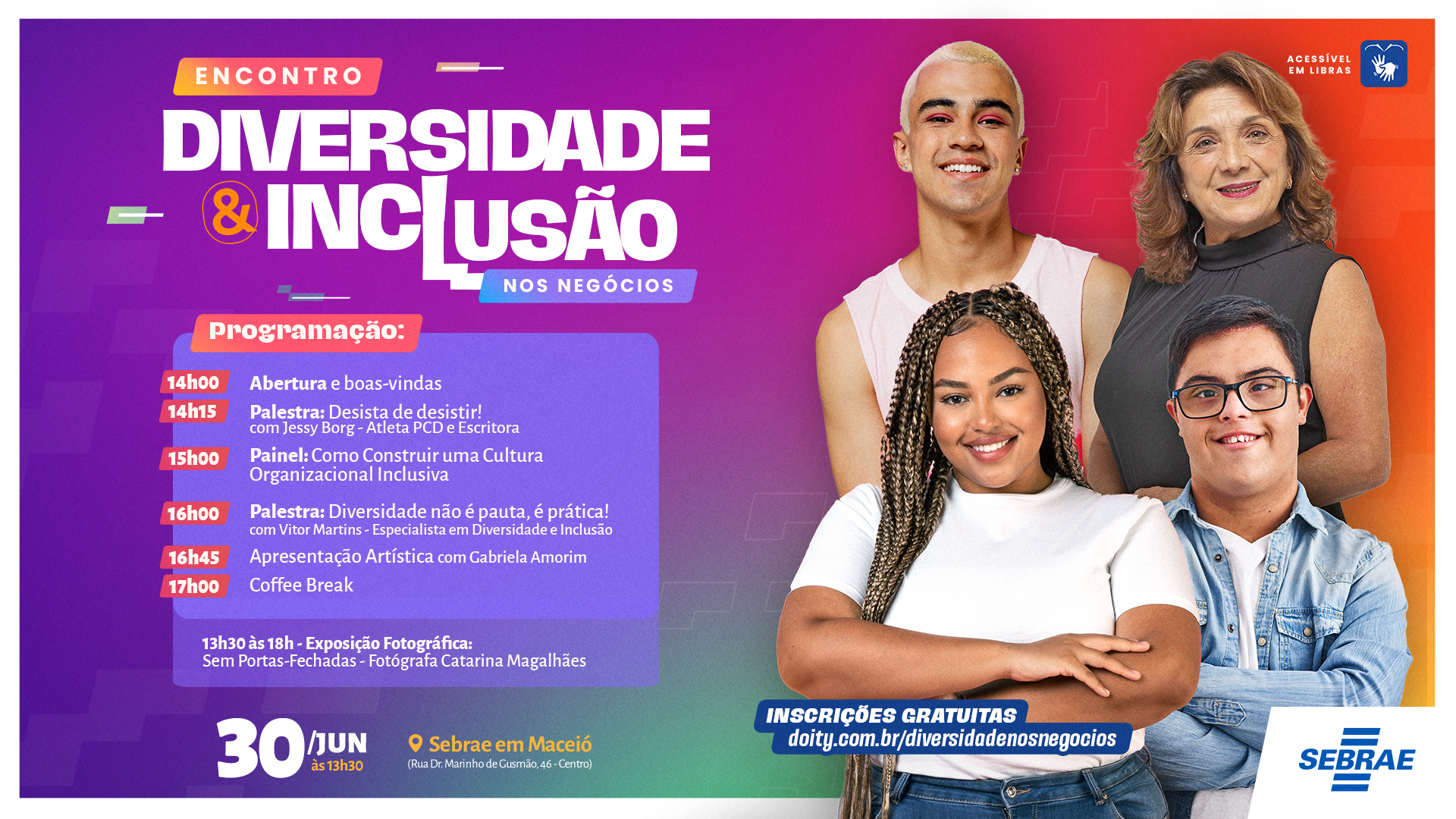 Diversidade e inclusão nos negócios é o tema central de um encontro que o Sebrae Alagoas promove na próxima sexta-feira (30) em sua sede, no Centro de Maceió. A ideia é despertar nos empreendedores e na sociedade a importância do tema dentro das empresas e organizações, para inspirar a construção de ambientes de trabalho mais inclusivos, onde todas as pessoas se sintam valorizadas e representadas.
