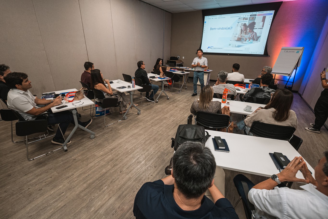 A aula inaugural do Potencialize foi conduzida pelo consultor Sacha Passos, marcando o início da jornada de capacitação e desenvolvimento empresarial.