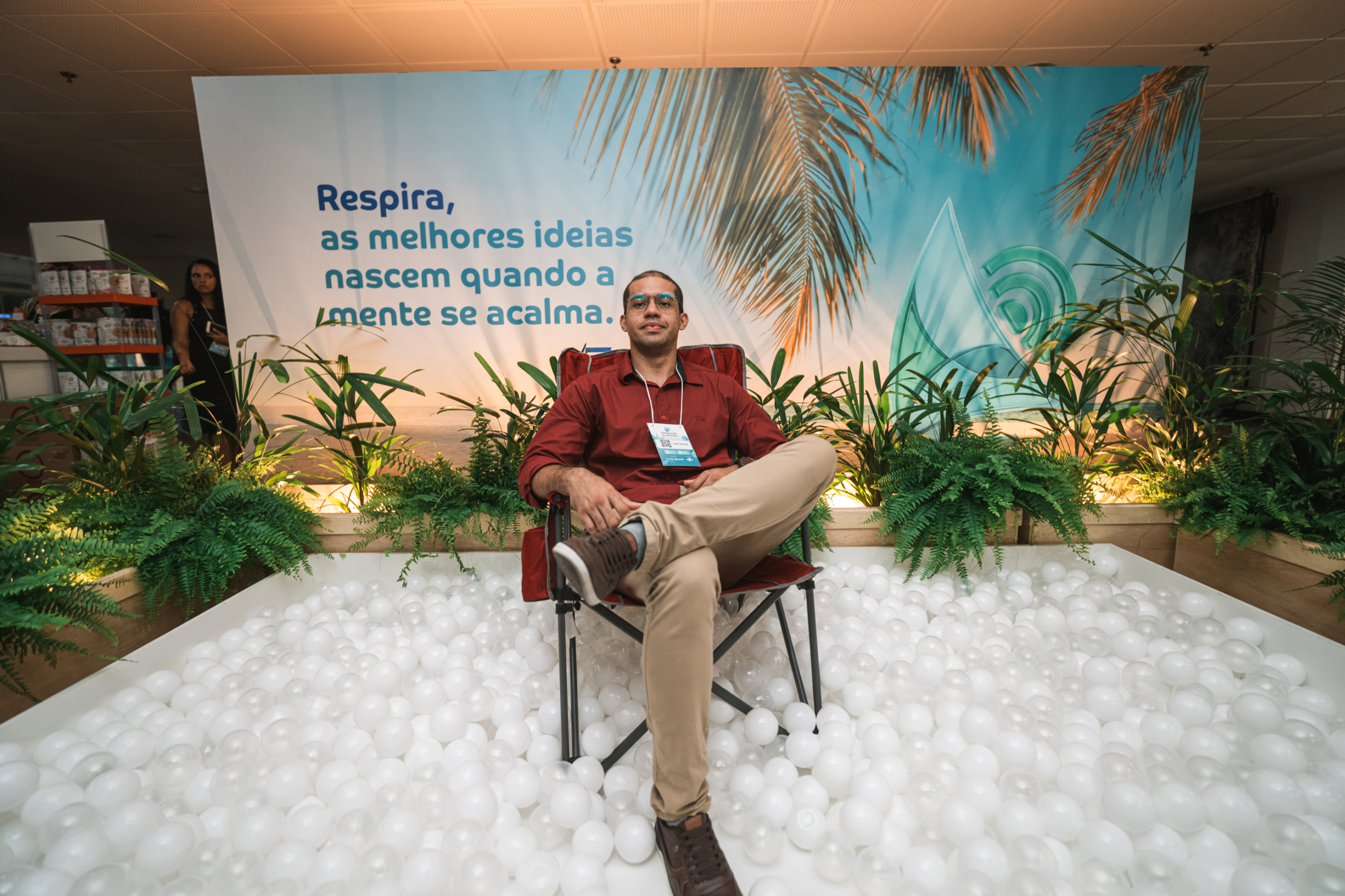 O evento conta com um espaço dedicado ao bem-estar, onde os participantes podem relaxar com sessões de massoterapia, degustar cafés especiais, água de coco, biscoitos e chás, além de conhecer produtos de clientes e parceiros da instituição.