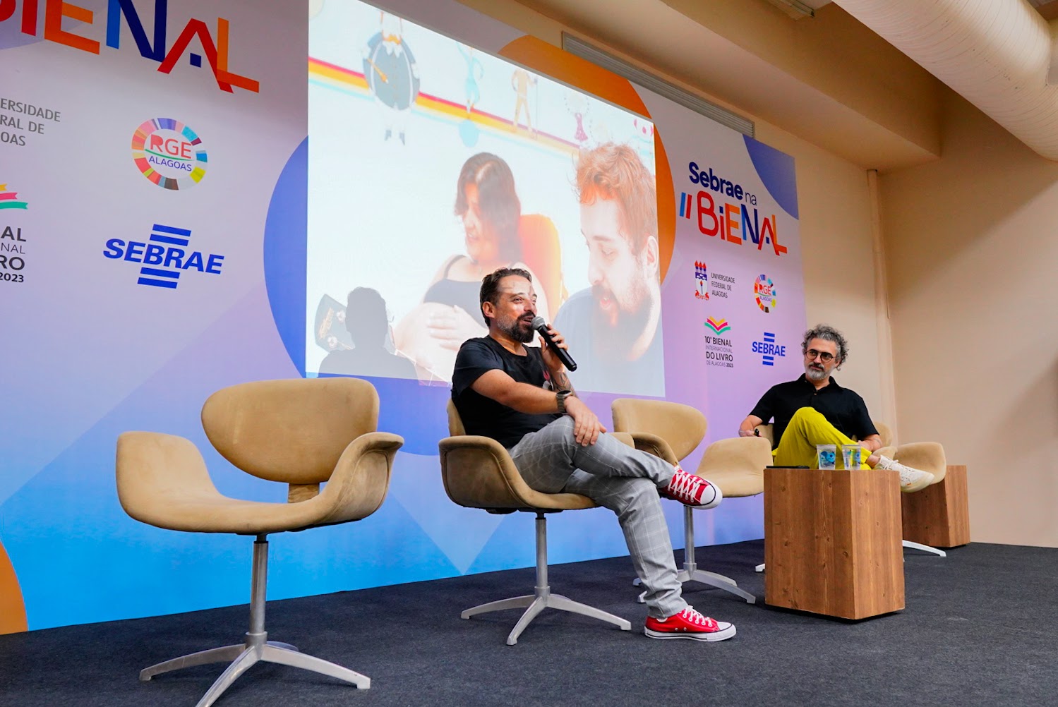 A programação que o Sebrae Alagoas preparou para apresentar na 10ª edição da Bienal Internacional do Livro de Alagoas tive início com auditórios lotados e muita tietagem. O criador do Mundo Bita, Chaps Melo, trouxe uma palestra falando de sua experiência no empreendedorismo, que começou logo após o nascimento de sua primeira filha, em 2011. Ele relatou a importância de eventos como a Bienal, que aproxima os autores dos seus públicos.