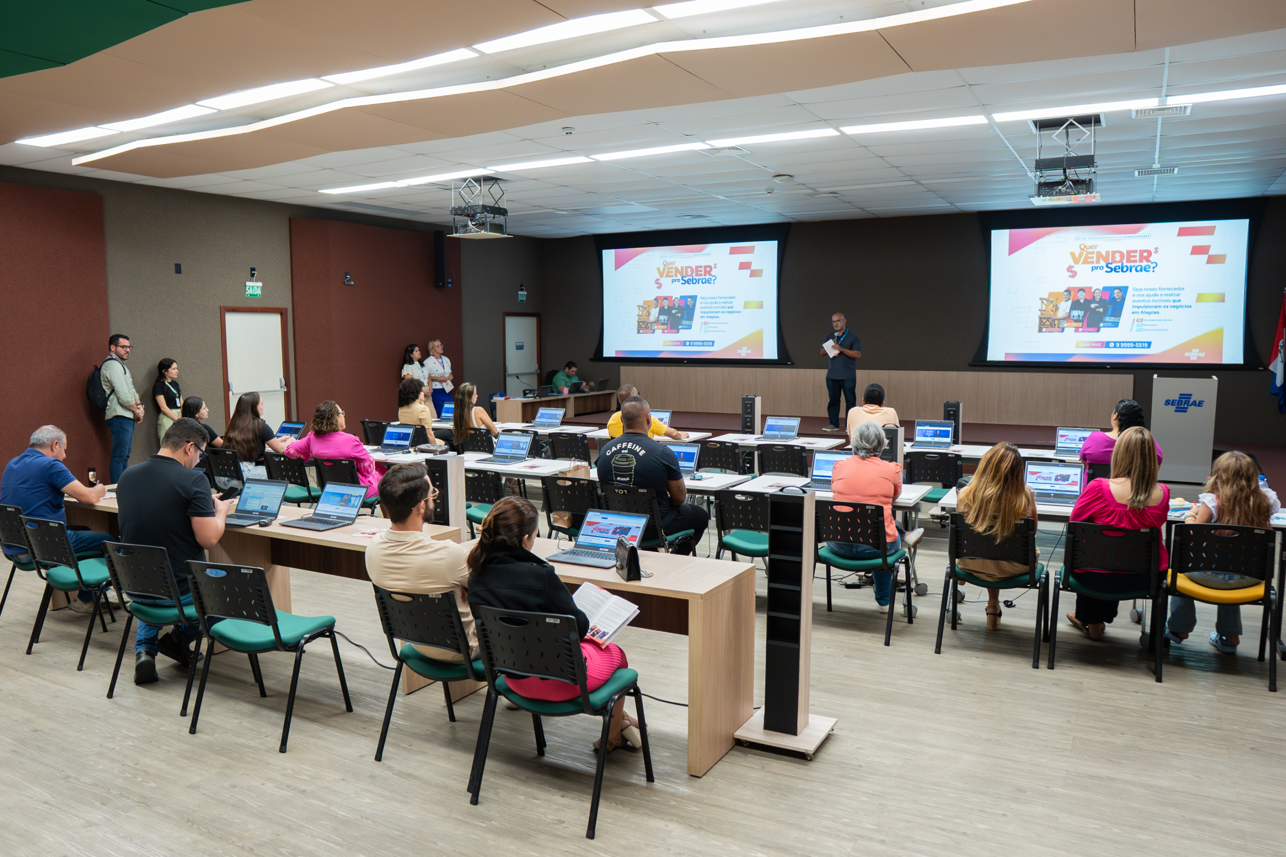 Os interessados podem se inscrever pelo site: https://credenciamento.sebrae.al/. Para esclarecer as dúvidas sobre o processo de inscrição, foi realizado, nesta segunda-feira (24), a oficina Cadastramento de Fornecedores para Eventos: Quer Vender para o Sebrae?, no auditório da instituição.