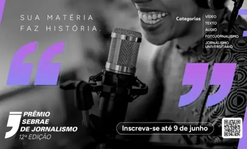 O formulário para as inscrições, assim como o regulamento, podem ser acessados através do site: https://premiosebraejornalismo.com.br/. Criado pelo Sebrae, o PSJ completa 12 anos e inova com a criação da homenagem temática “Jornalista Parceiro do Empreendedor – Pequenos negócios e COP-30”, a ser concedida na etapa nacional, ao profissional de imprensa que se destacar na abordagem sobre empreendedorismo relacionado à agenda ambiental reforçada pelo evento mundial que ocorrerá no Brasil neste ano.
