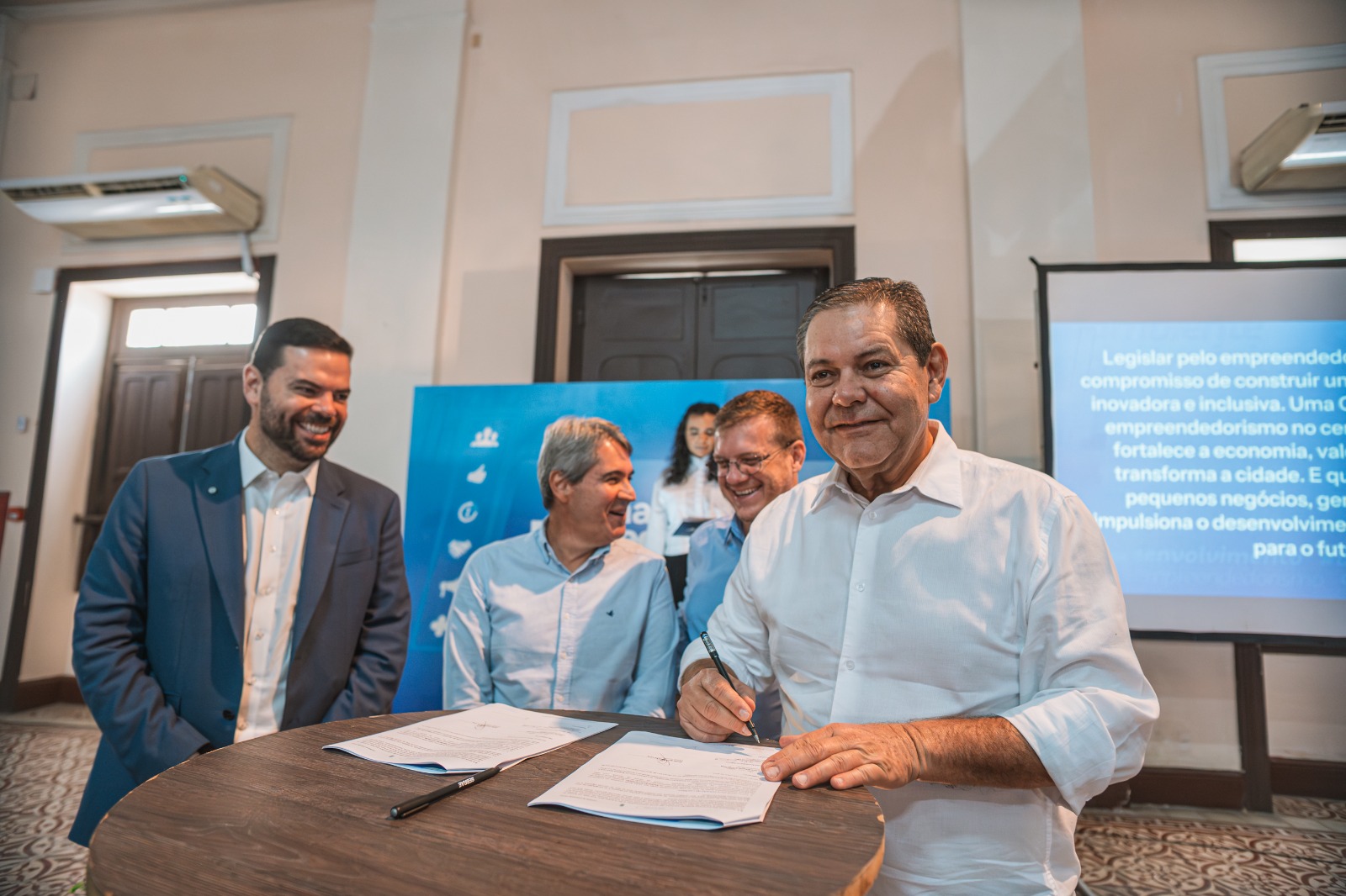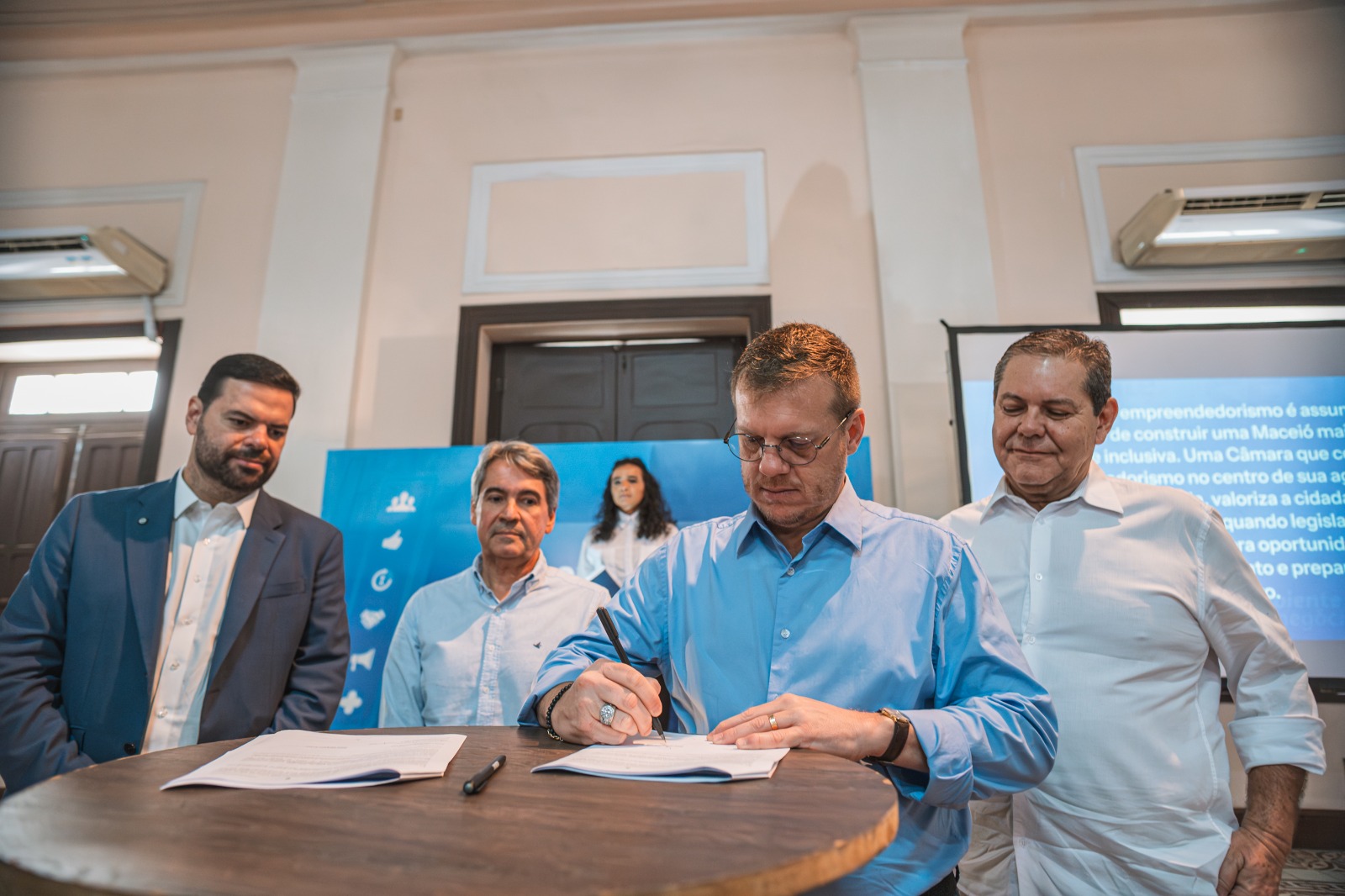 Com o propósito de fortalecer o ecossistema empreendedor de Maceió, com foco em inovação, simplificação, educação empreendedora, compras públicas e boas práticas legislativas, o Sebrae Alagoas e a Câmara Municipal de Maceió firmaram, nesta terça-feira (30), o convênio de cooperação técnica do Projeto Câmara Empreendedora. O lançamento oficial aconteceu na sede da Associação Comercial de Maceió, no bairro do Jaraguá.