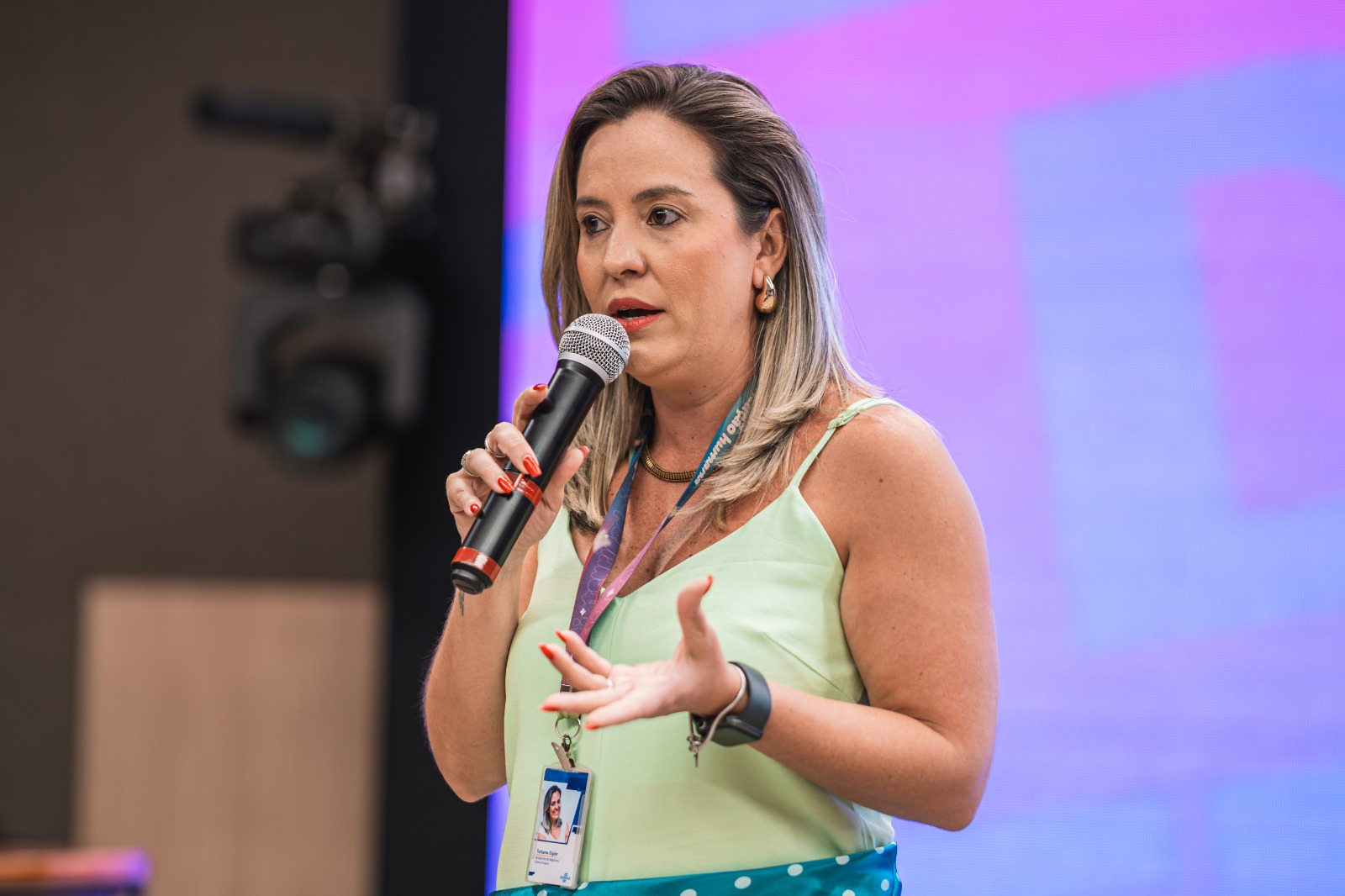 A gerente de Ambiente de Negócios, Íria Almeida, mediou a roda de conversa com prefeitos que participaram da Missão Técnica a Medellín, na Colômbia, e destacou o aprendizado sobre a transformação urbana e social.