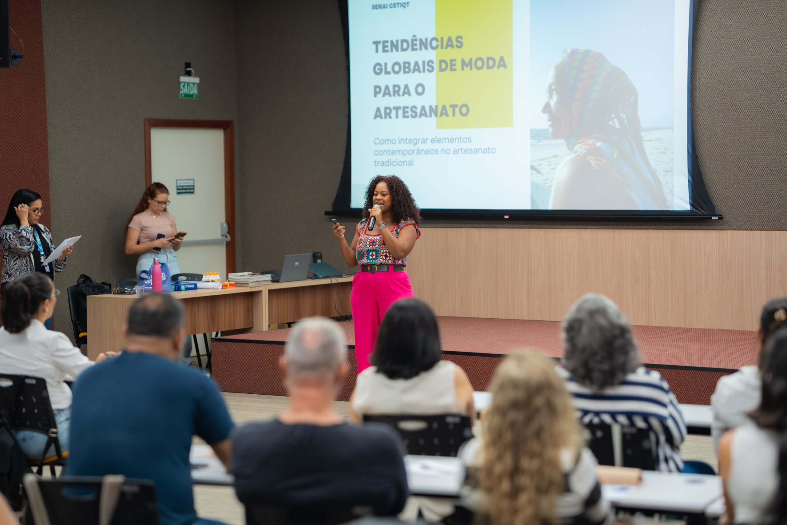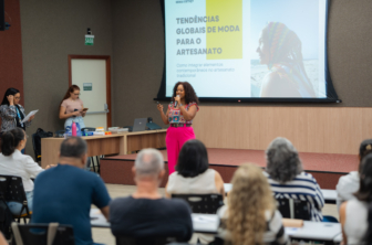 Cerca de 30 artesãos participaram da palestra e oficina da consultora de moda e confecção, Charlene Santos. Ela apresentou insights de como utilizar macrotendências, tendências de moda e comportamento, para o artesanato. “Essa unificação do tradicional, que traz muita cultura e ancestralidade com o contemporâneo, sem deixar de lado, obviamente, o respeito pelos artesãos e a arte deles, mas como eles podem integrar elementos que, de fato, têm potencial para para atrair novos clientes. Essa abertura permite atingir outros públicos, que por sua vez trazem novos anseios, consomem outras novidades”, afirmou Charlene.