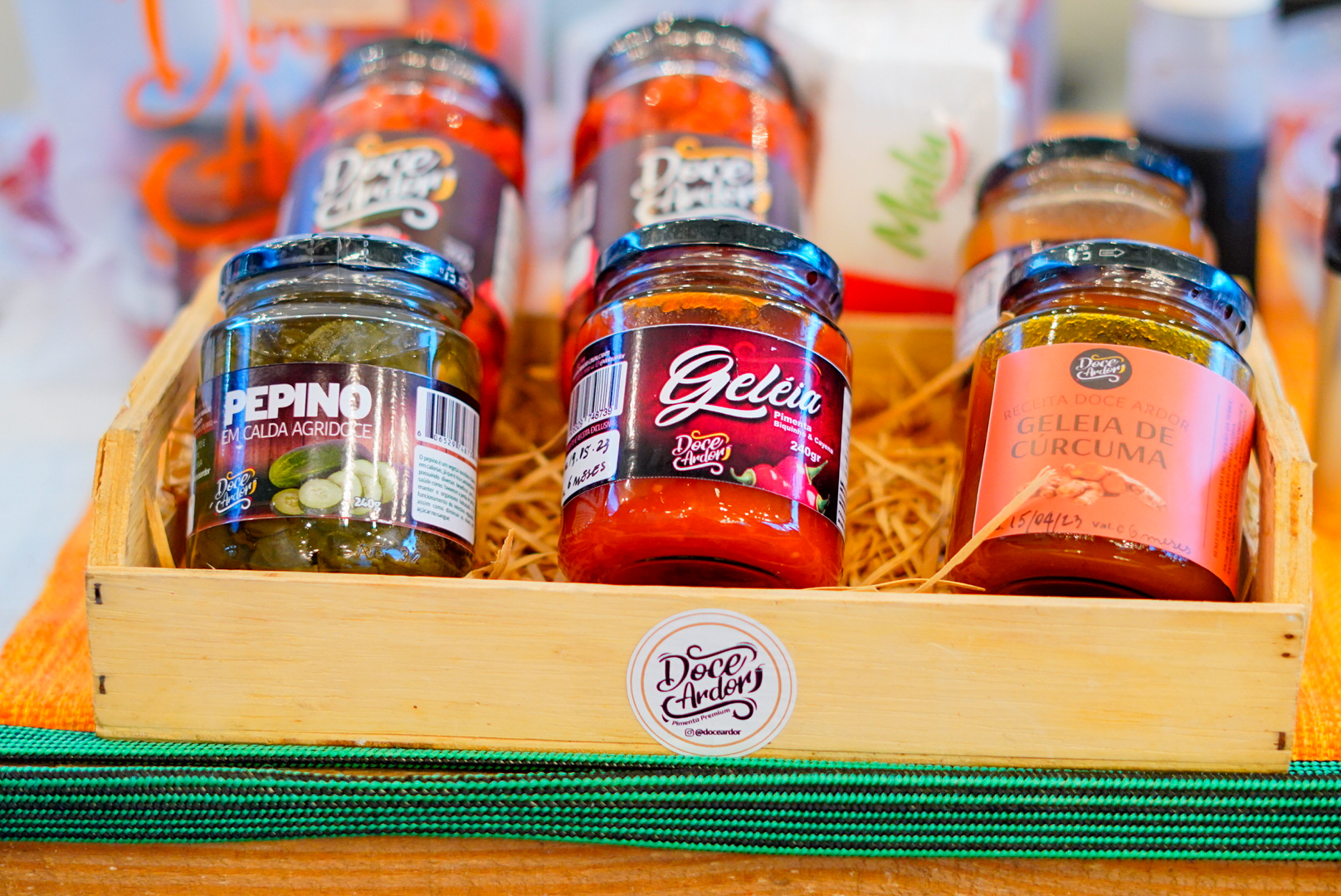 Pimenta maturada agridoce, geleia de pimenta agridoce, geleia de gengibre agridoce e pepino agridoce são algumas das iguarias comercializadas por ele, que foi convidado para participar do evento enquanto visitava a feira.